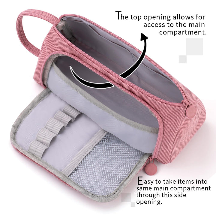 - High QualityThe Unique design with high quality Corduroy, and strong zipper makes the pencil bag more durable, scratch resistant and wear resistant, easy to clean.