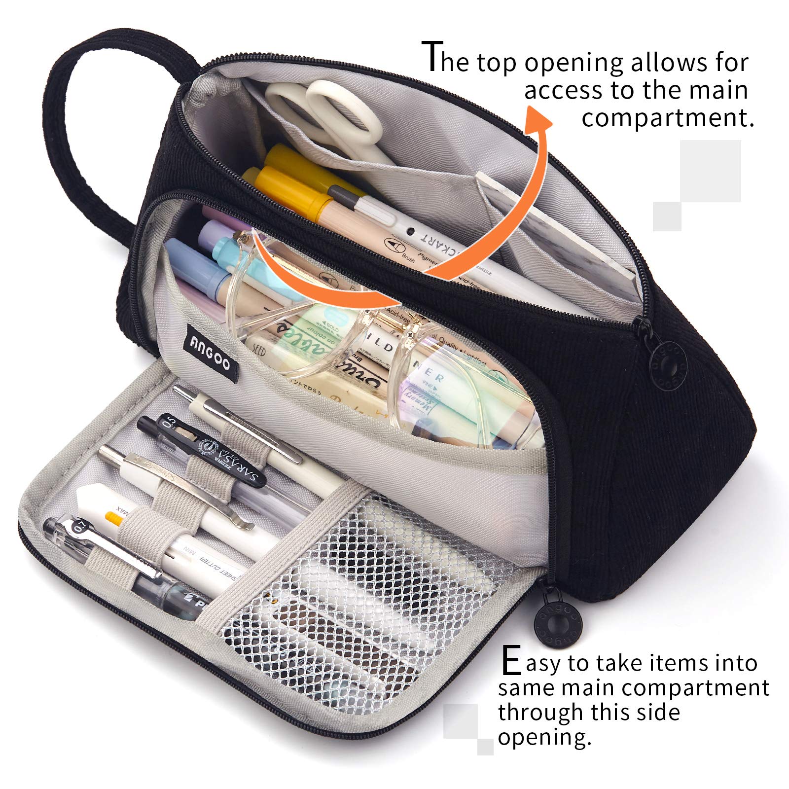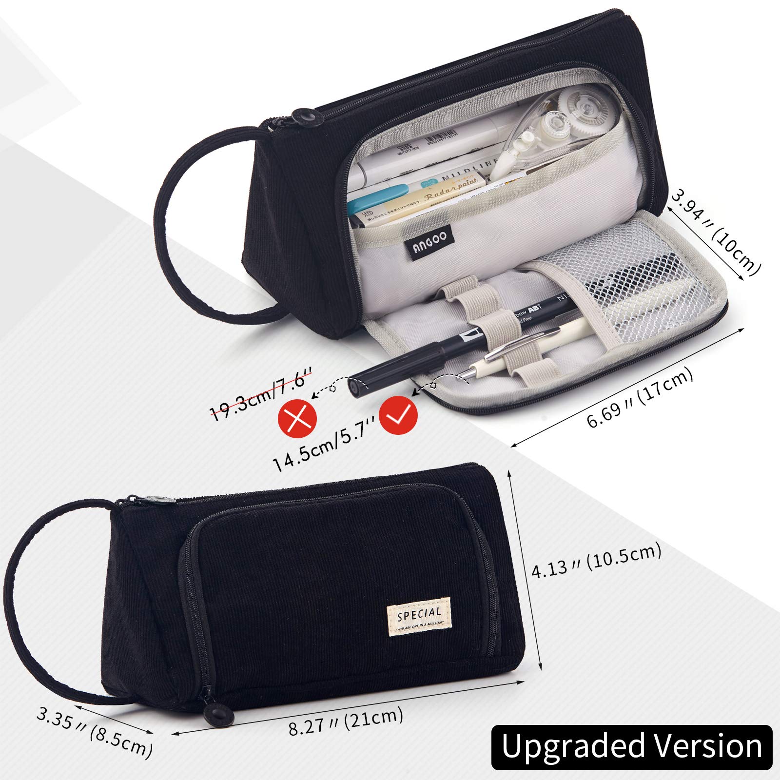 - Multi-Function:1.Opens sideways or from the top 2.Keep important small notes, cards, and tickets in an easy-to-view compartment. 3.It is not only a pencil case, but also can be used for other purposes such as travel case or makeup bag.
