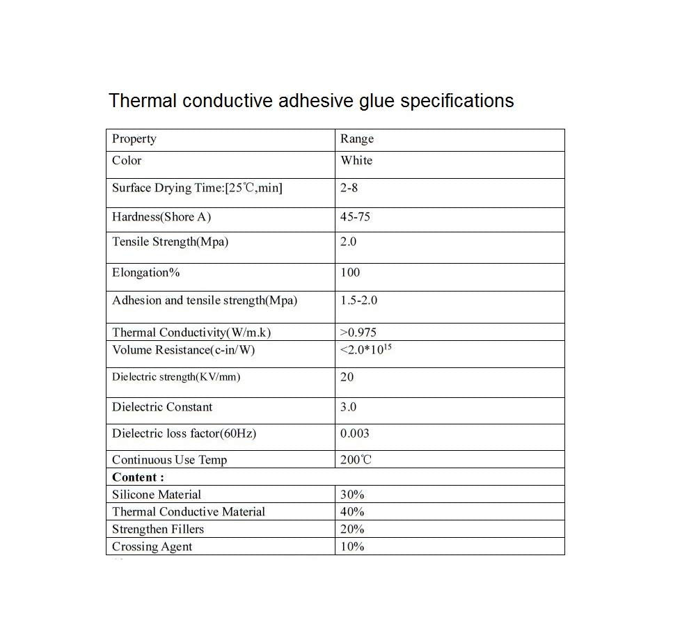 - Thermal conductivity > 0.975 w/mk