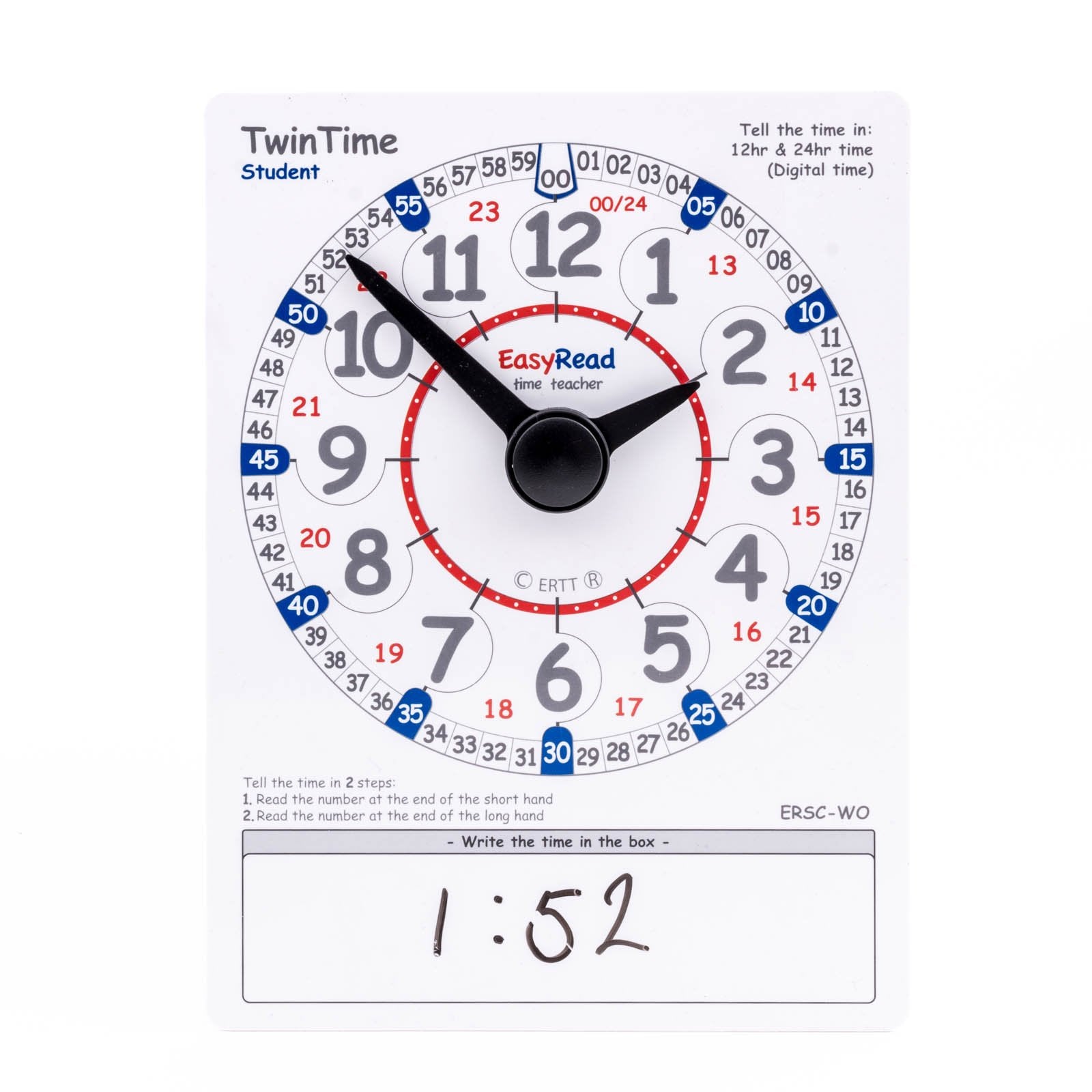 Discover the authentic EasyRead Time Teacher ERSC-WO Twin Time Double-Sided Student Card by ertt, part of our Science Kits & Toys collection. Imported directly from the USA and sourced from trusted suppliers, this product is 100% authentic and delivered anywhere in India at the best price.