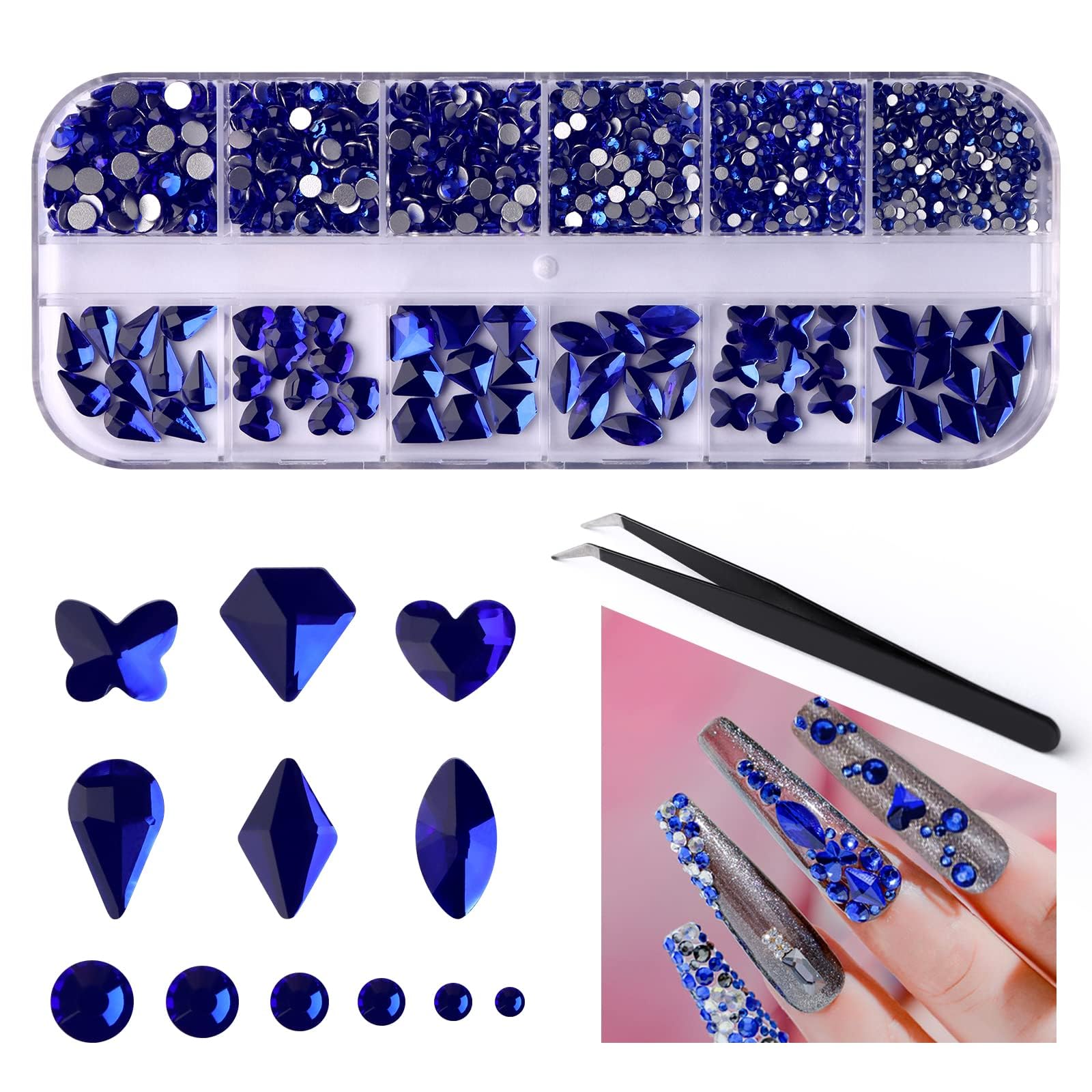 - Original Rhinestones & Decorations – Dark Blue Nail Rhinestones Hearts Butterfly Shaped Nail Art Crystals Diamonds Flat Back Rhinestones Diamond Nail Gems with Tweezers by EBANKU