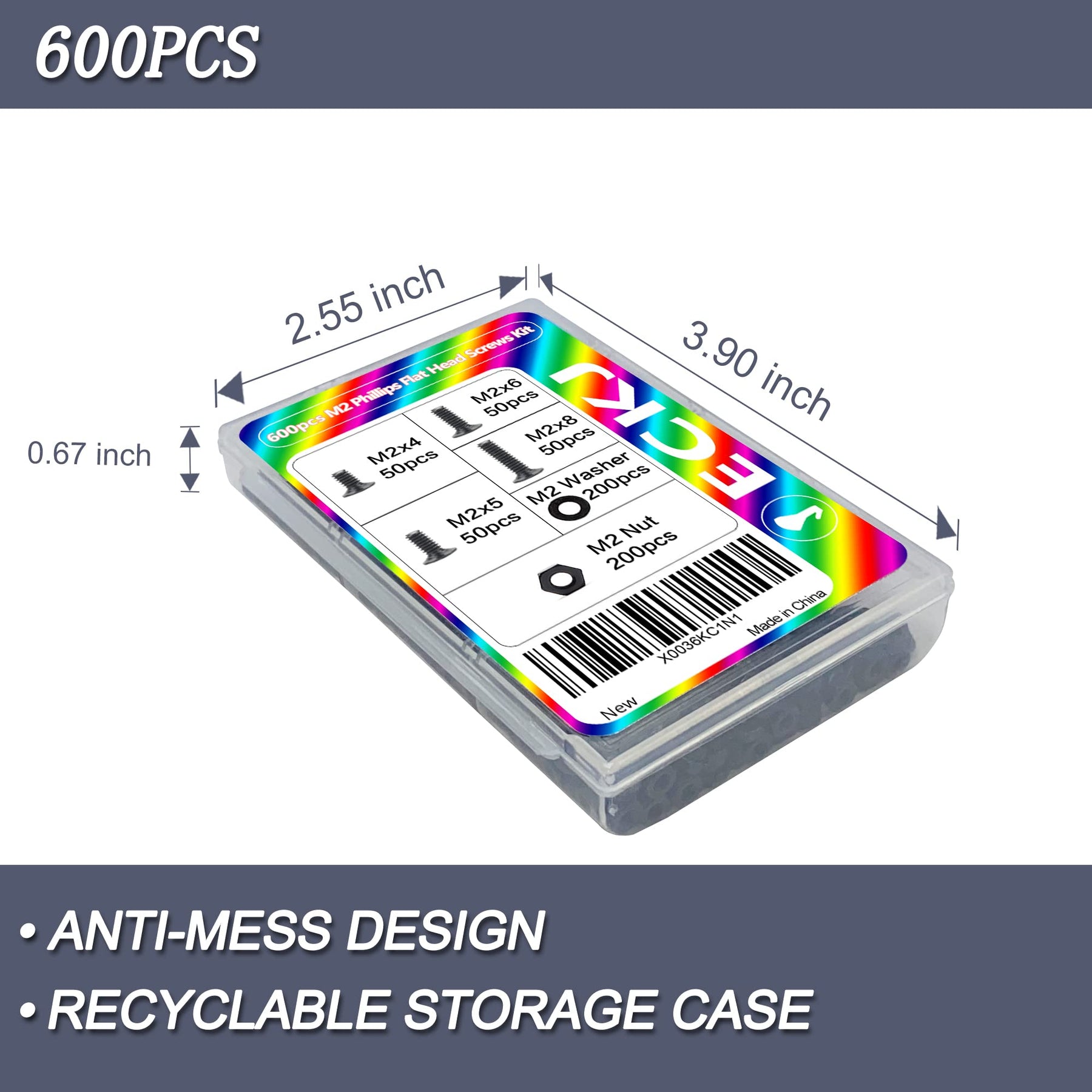 - Original Computer Screws – 600pcs M2.5 Laptop Notebook Computer Replacement Screws, Phillips Flat Head Countersunk Machine Screw Bolts Nuts Washers Assortment Kit, M2.5 x 4mm/ 5mm/ 6mm/ 8mm for SSD Repair, NVMe Drive Black by ECKJ