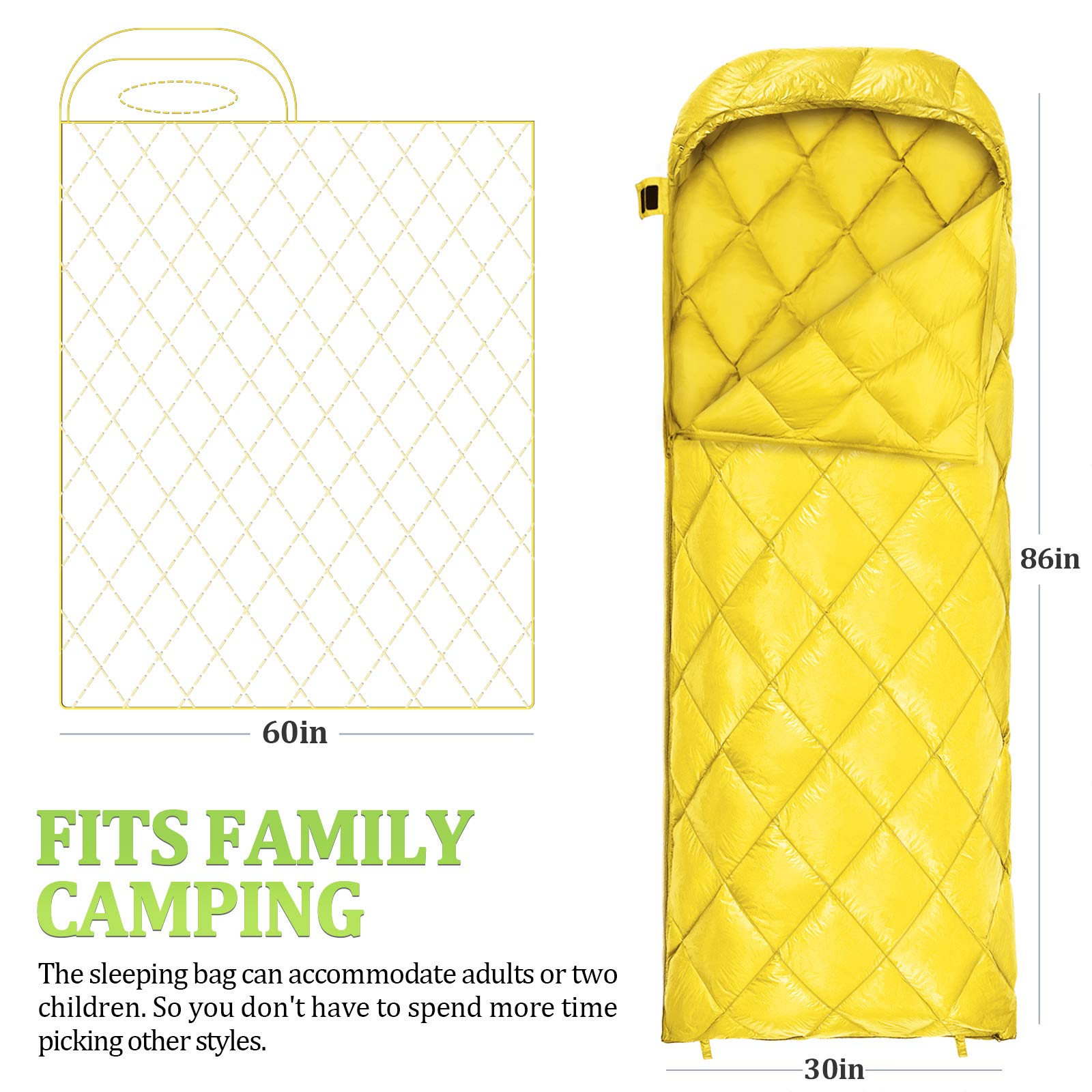 - Based on Your NeedsAre you looking for a warm and compact down sleeping bag Are you looking for a sleeping bag that can be used by both adults and childrenAre you worrying about how to save travel luggage space In order to meet the needs of our customers, we have produced this lightweight down sleeping bag.
