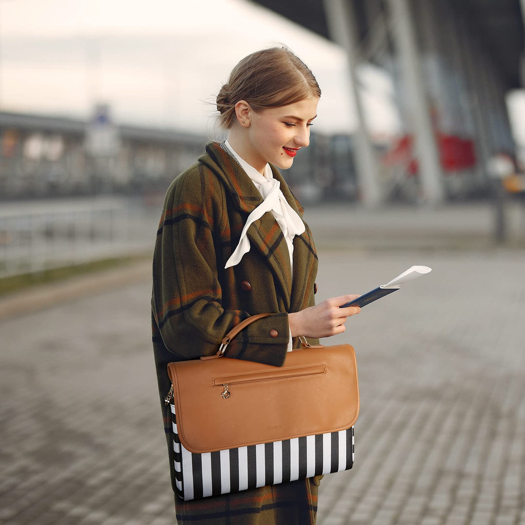 - Versatile Laptop bag: Back luggage strap to securely attach to the rolling luggage. Soft top handle and adjustable padded strap (drop is 32.8'' - 58.6''), flexible switch into crossbody bag, handbag, or shoulder bag.