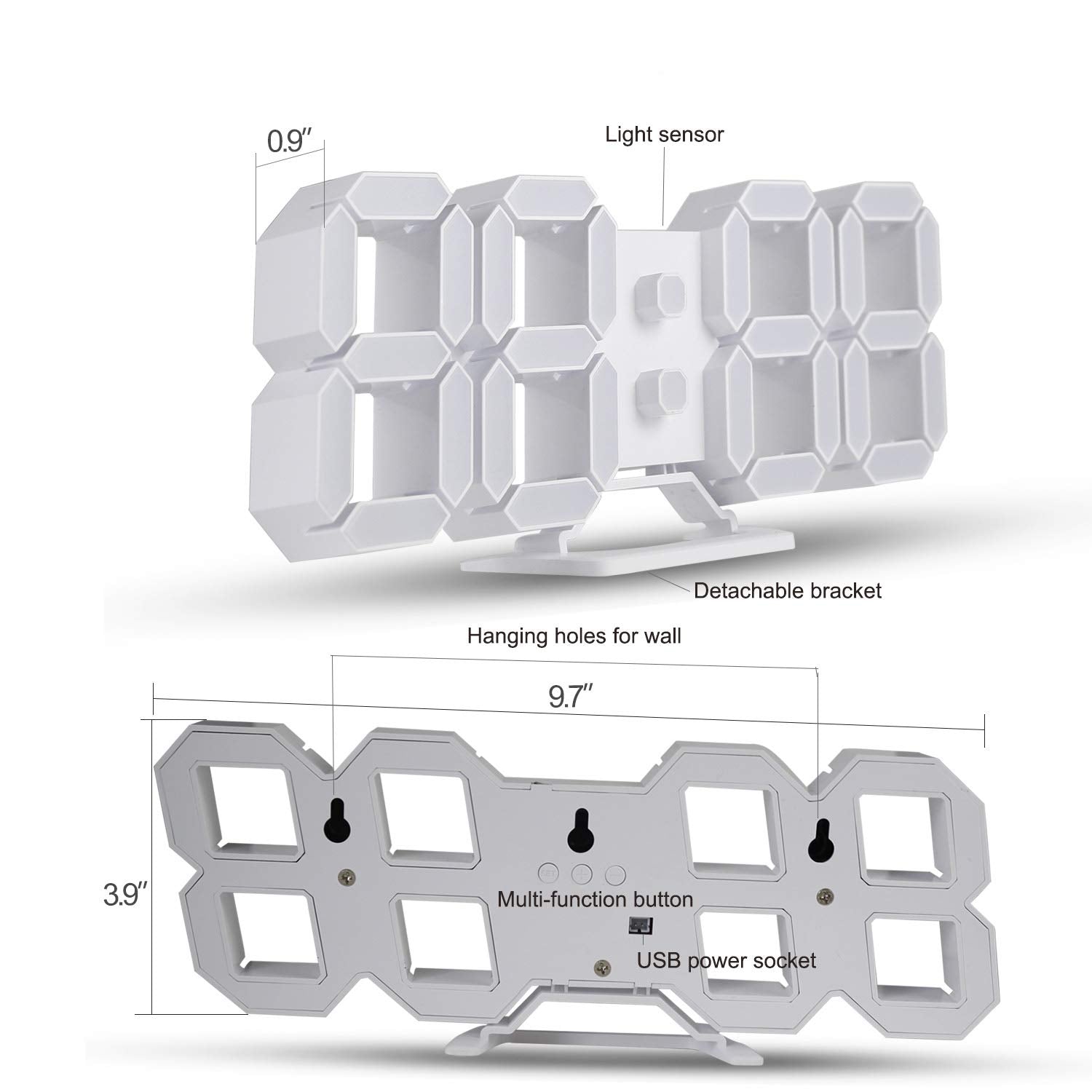- Original Alarm Clocks – EDUP Home 3D LED Digital Wall Clock Desk Alarm Clock with Remote Control for Kitchen Bedroom Office, Fashion 9.7 LED Night Light Decor Clock Adjust Brightness 12H/24H Time Date Temperature White by EDUP HOME