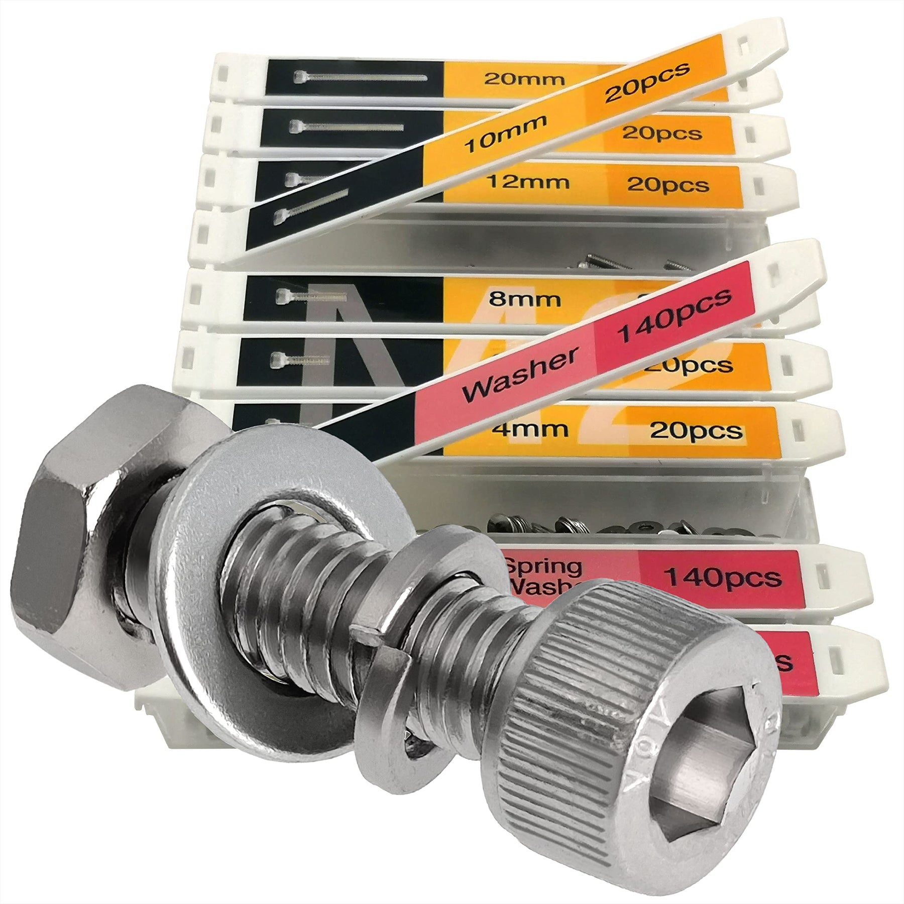- Original Socket Head Screws – M2 540pcs Hex Socket Head Cap Screws Nuts Bolts Kit Stainless Steel M2 x 4 6 8 10 12 16 20 mm Screws Assortment Set with Assorted Washer Spring Washer and Nuts, Individual Slots and lids by EEEEE