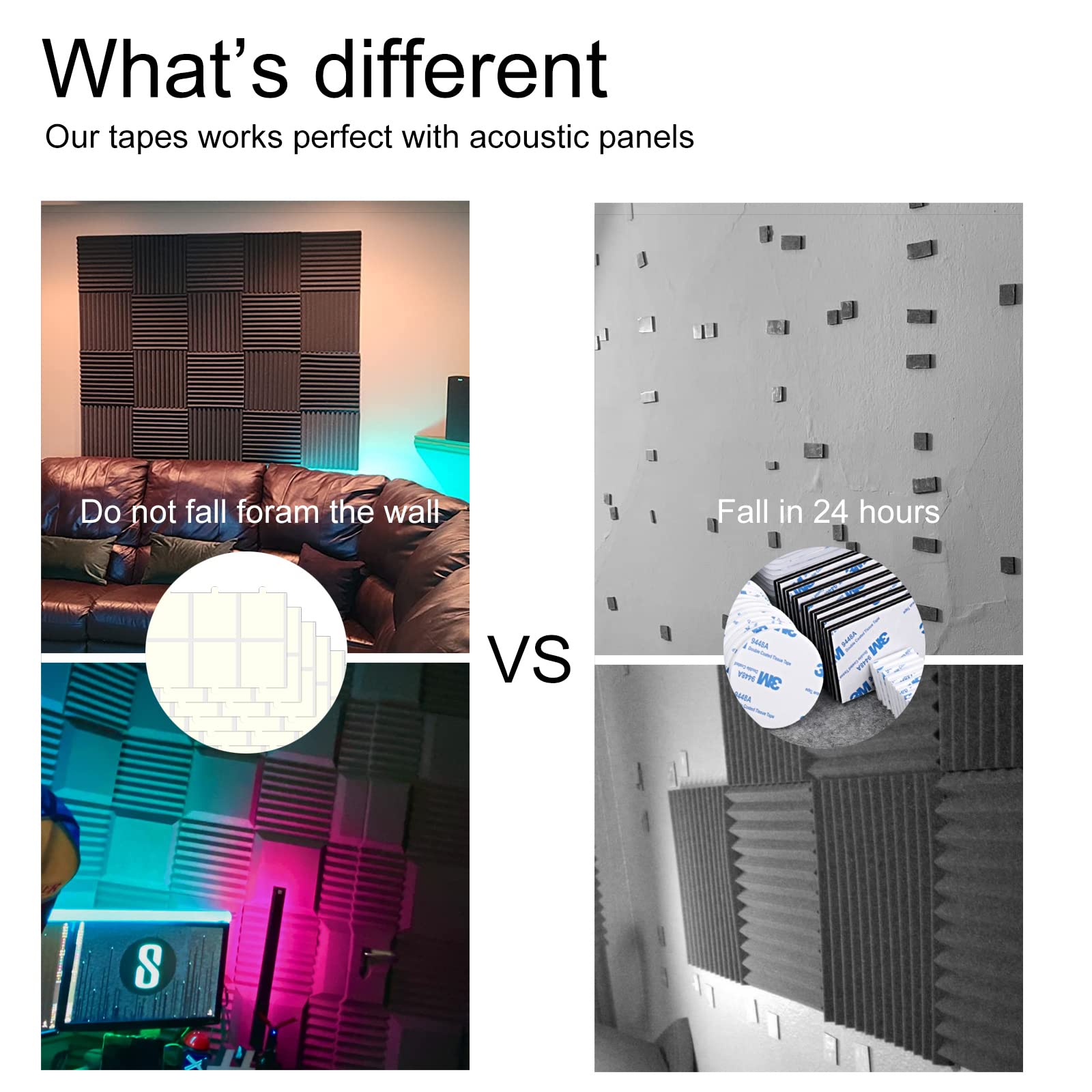 - Original Mounting Tape – 60 Pack Double-Sided Adhesive Tape for Acoustic Soundproofing Foam Panels Strong Pad Mounting, Heavy Duty Wall Adhesive Squares by EGINO