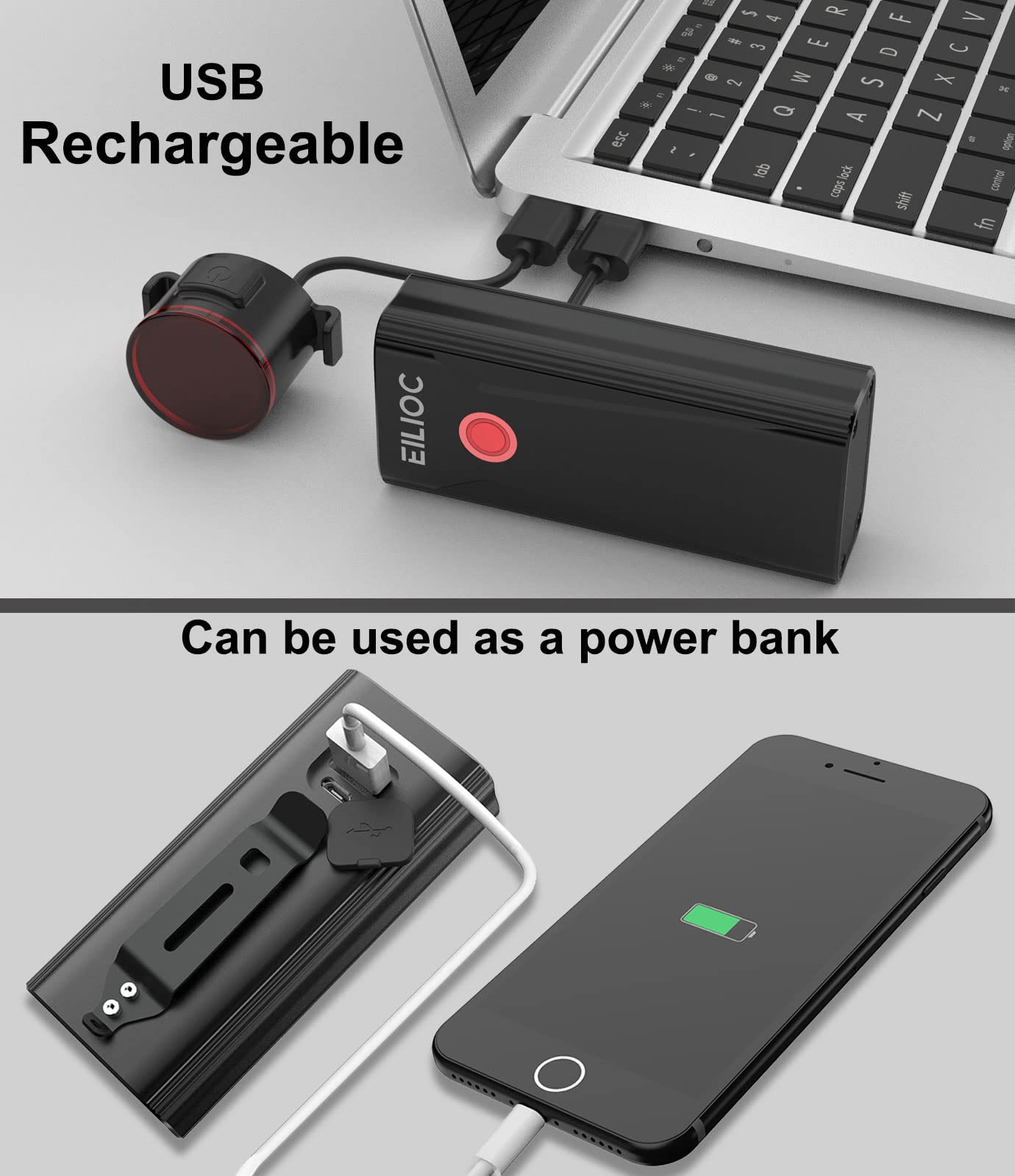 - Original Headlight-Taillight Combinations – Bike Lights for Night Riding,6400 mAh Bicycle Light Front and Rear USB Rechargeable Bike Headlight and Tail Light Set,Super Bright 1200 Lumen Led Safety Light Accessories for Road and MTB by EILIOC