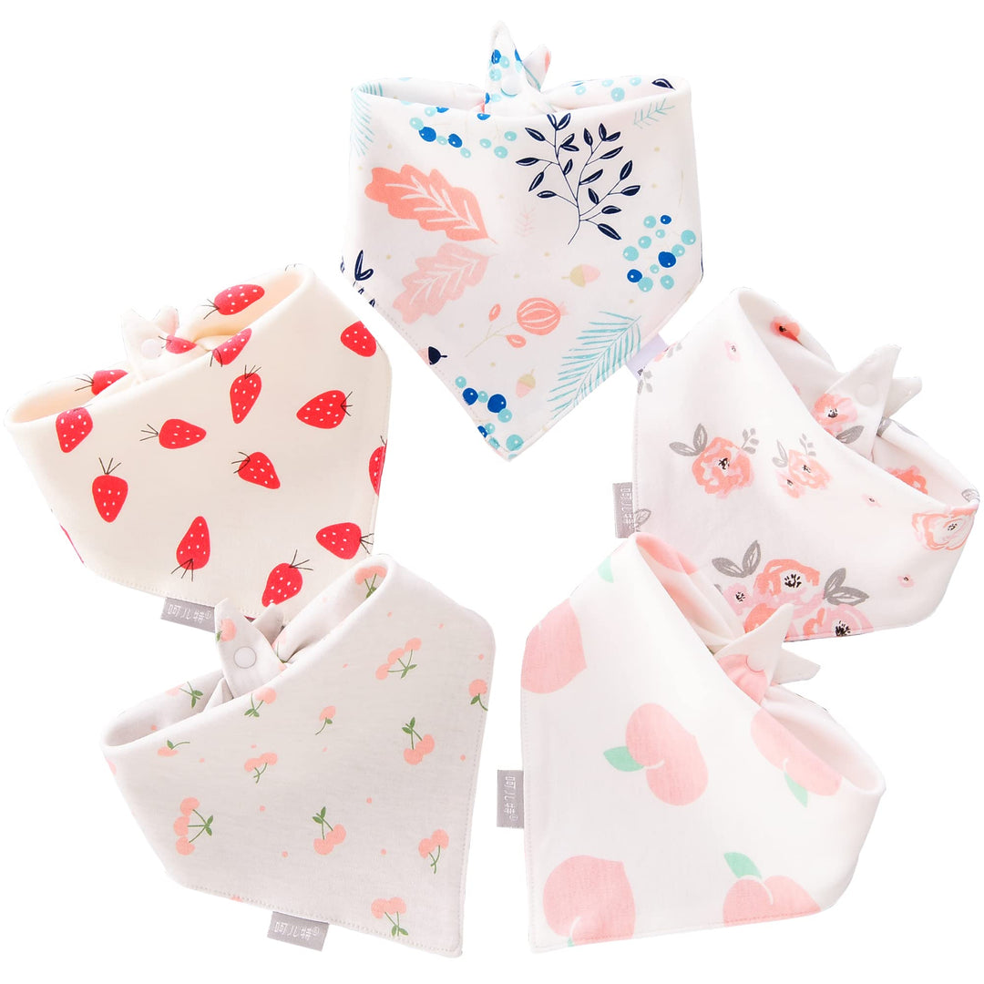 - Original Drooling Bibs – 100% Cotton Baby Bandana Drool Bibs for Drooling and Teething Nursery Burp Cloths 5 Pack Pink Strawberry Bibs for Girls by Eimmabey