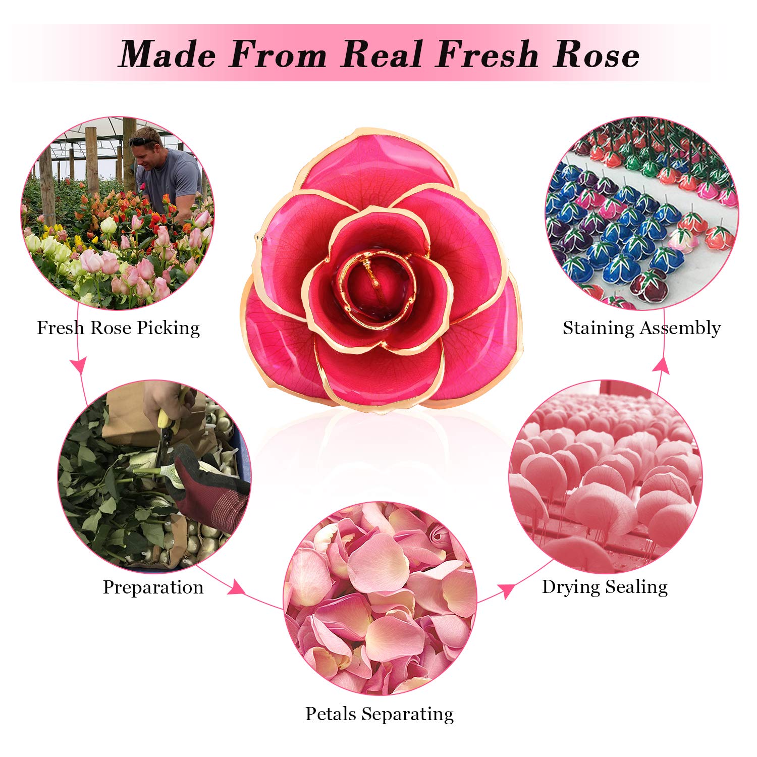 - Unique, ONLY for YOU: Each rose is carefully picked from rosary at its peak beauty; It takes over 4 days handmade and 65 steps to make just one piece, every gold dipped rose is precious; She is so special and definitely deserves everything unique