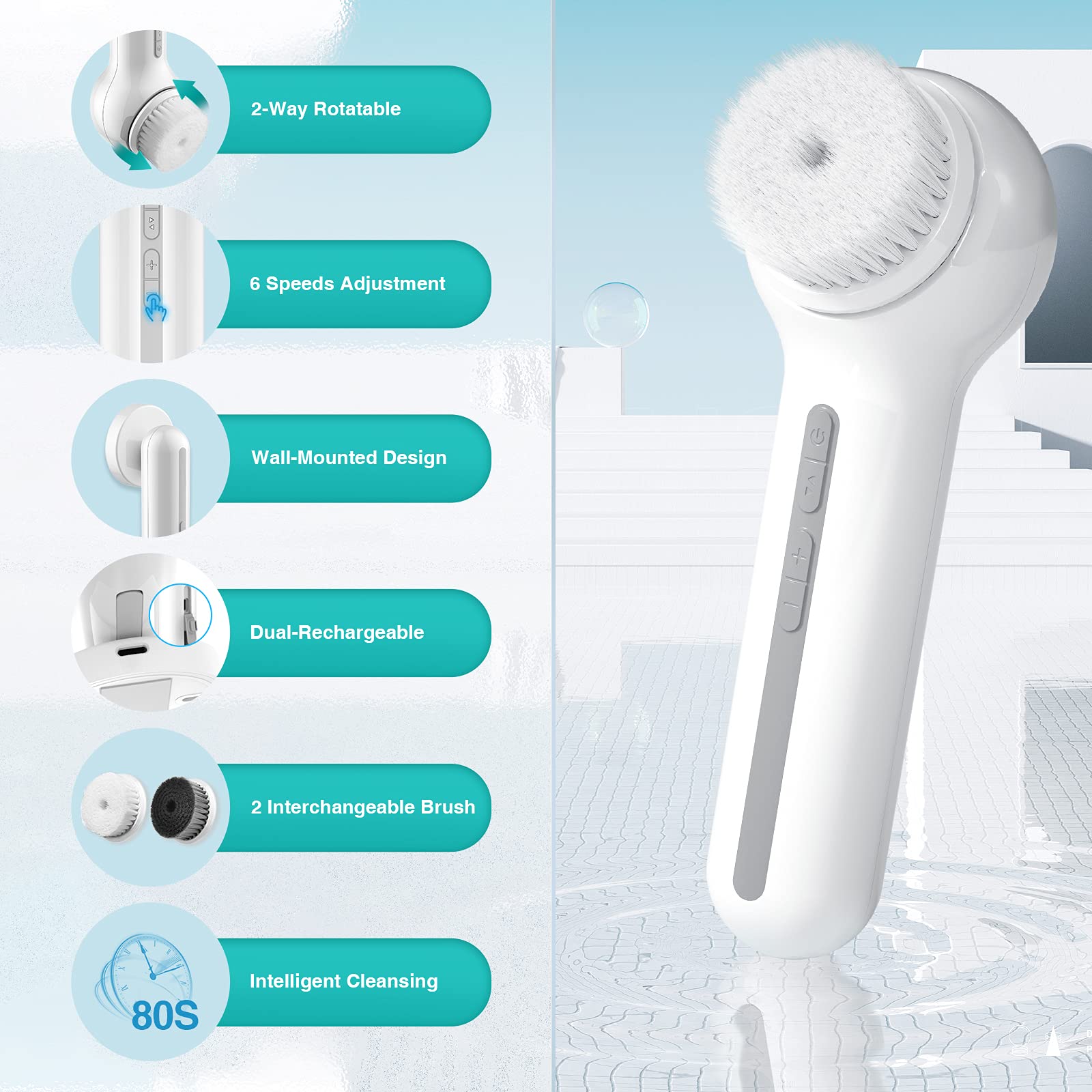 - Original Powered Facial Cleansing Brushes & Devices – Electric Facial Cleansing Brush: Face Brushes for Cleansing and Exfoliating - Spin Face Cleansing Brush with Wall Holder - Rechargeable Face Scrubber with 6 Speeds Adjustment by TOUCHBeauty