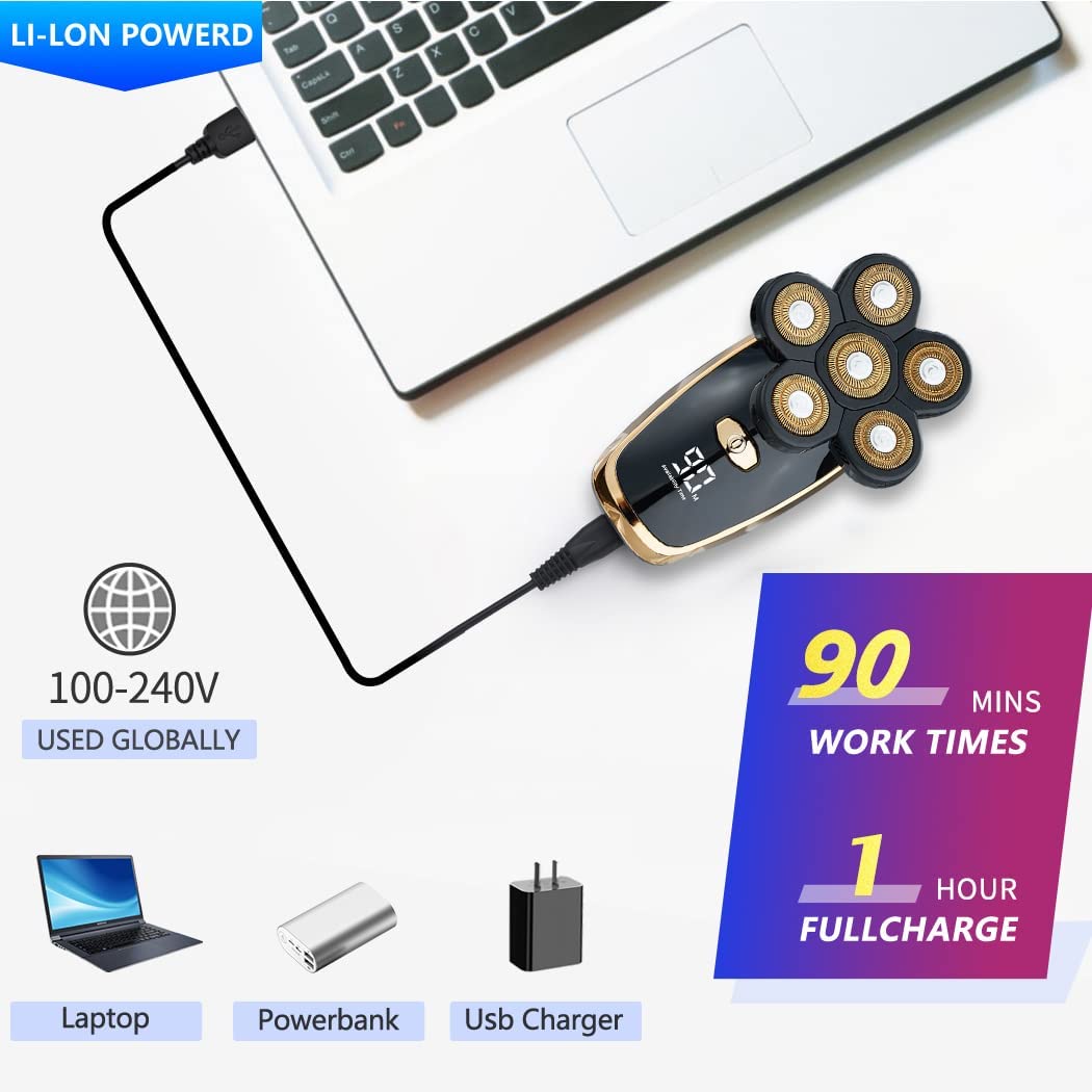 - USB Fast Charging & LED Display - USB quick charge for 1 hour, enjoy 90 minutes of shaving.Smart LED display can display the percentage of electricity, so you can decide when to charge the shaver after shaving.Convenient & intelligent design, it is very suitable for use at home or travel out.