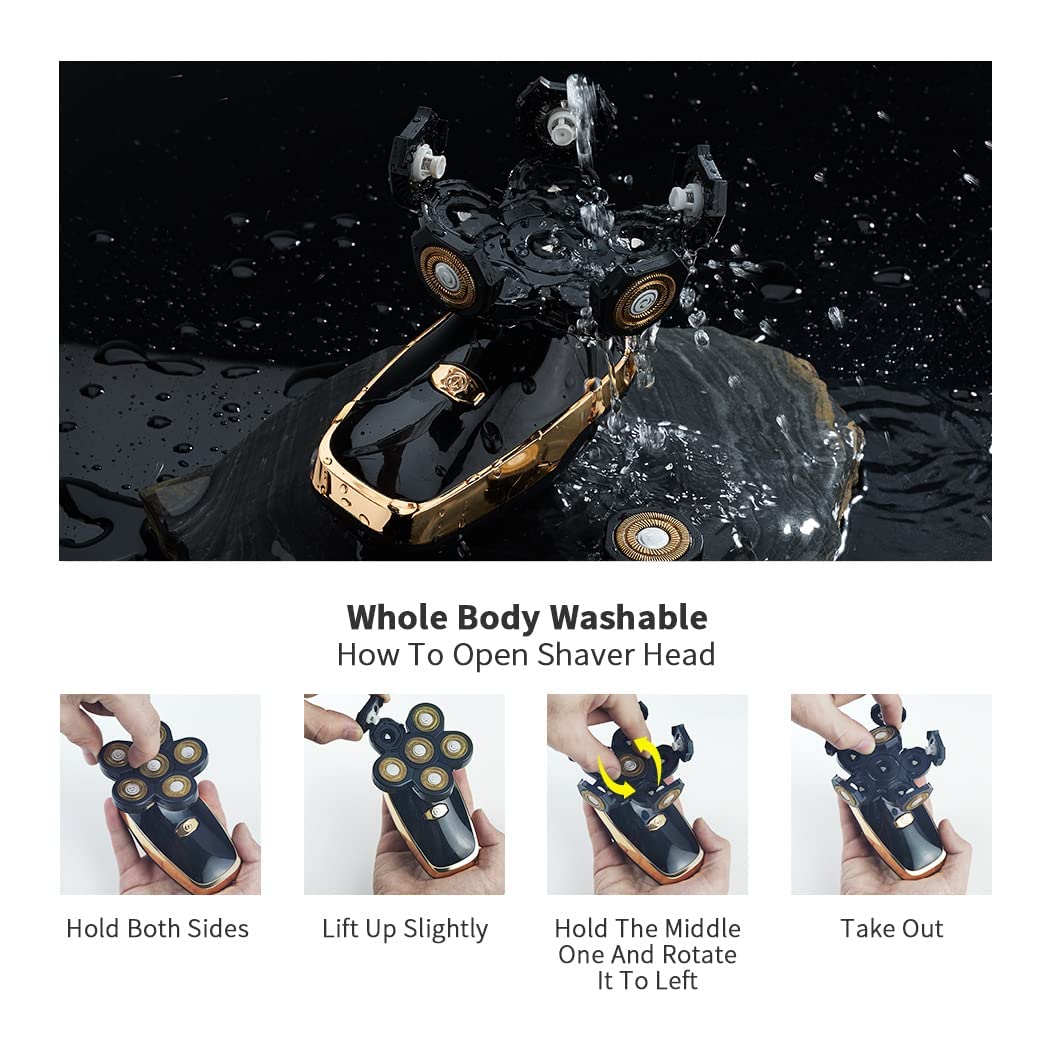 - 6D Floating Shaving Head - Roziahome rotary shaver has 6 flexible and precision heads, can effectively capture long and short hair. Floating cutter head can float up and down to more fit the facial contours, bringing you a comfortable and smooth shaving experience.