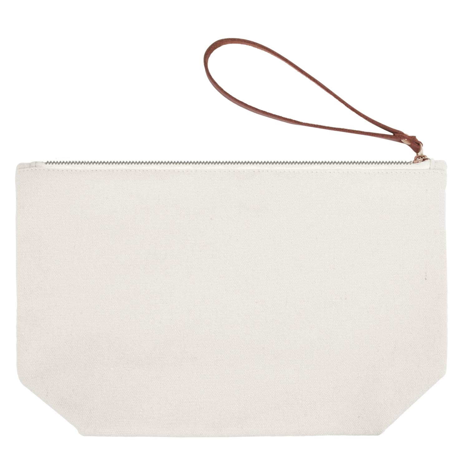 - Details: Made of durable canvas and lining inside, with leatherette wristlet strap for easily carry and close the bag with the zipper.