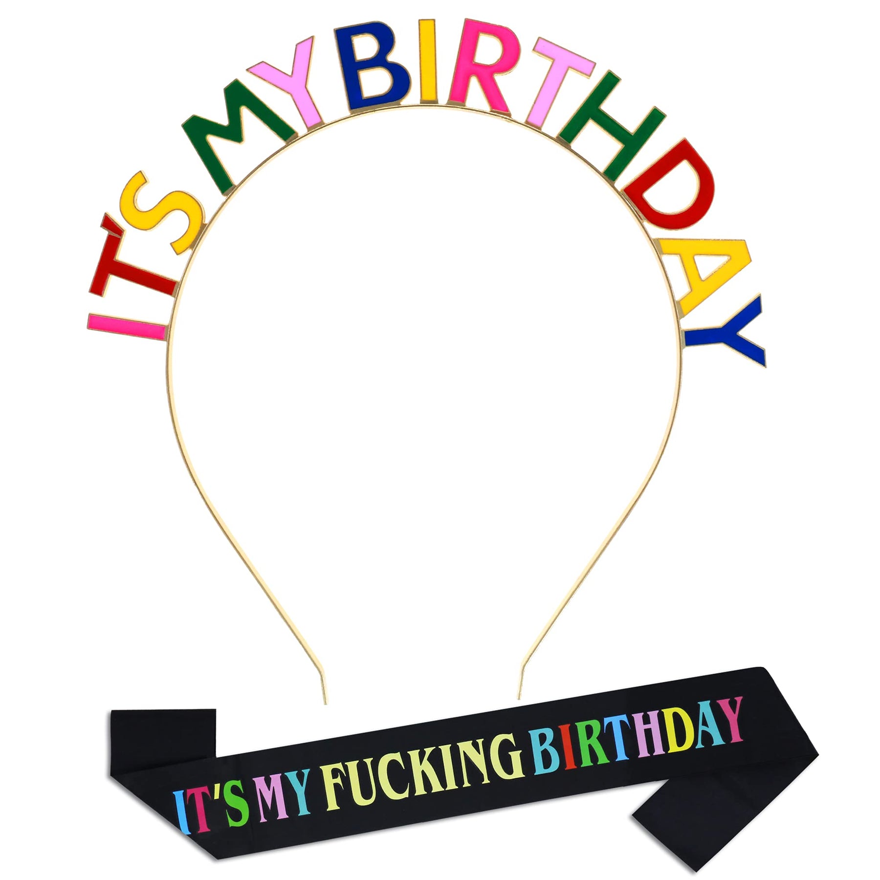 - * Colorful It's My Birthday Girl Sash & Tiara Headband Set: 1 Colorful It's My Birthday Headband + 1 Black It's My Birthday Sash that comes together, perfect for kids, girls, womens birthday party.