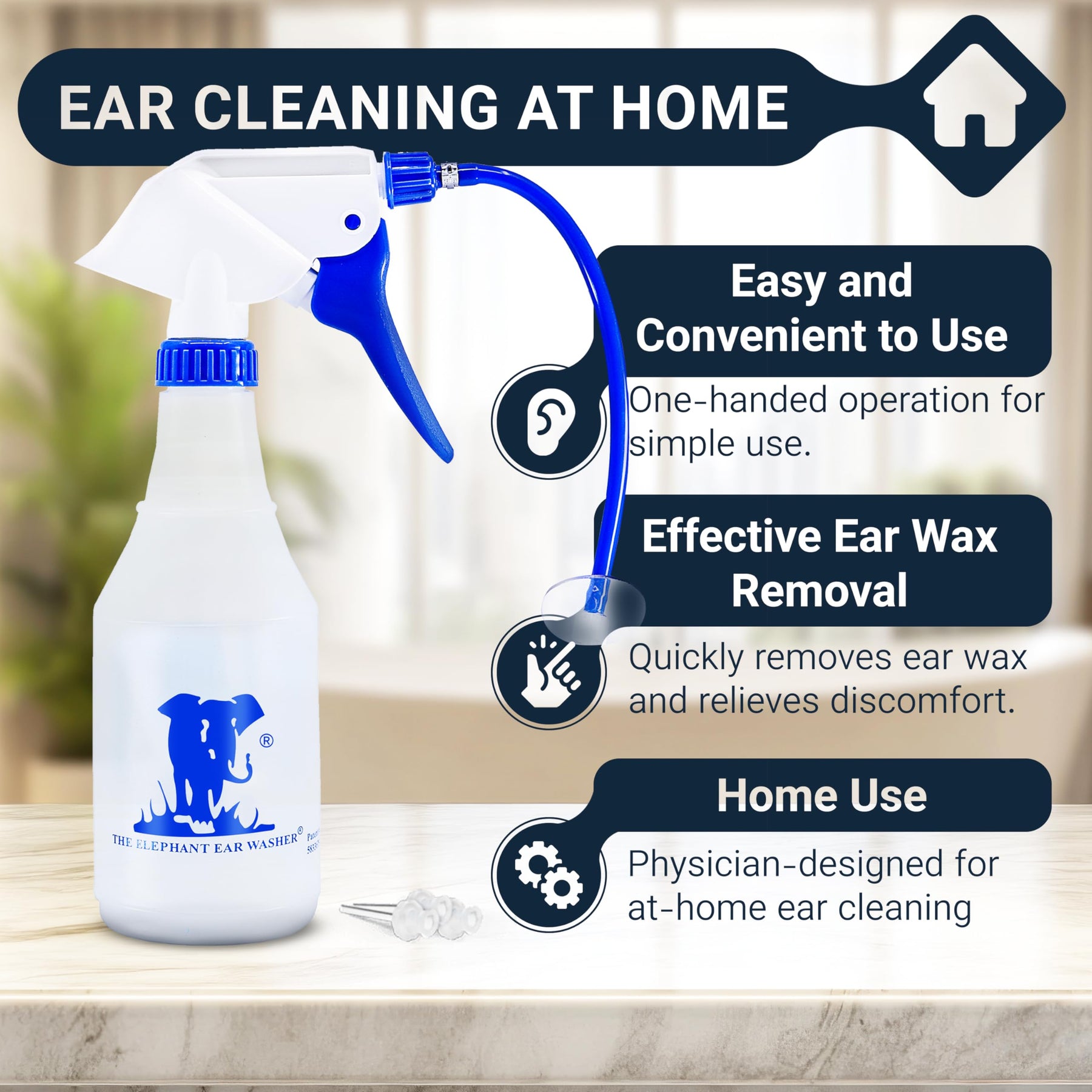 - Professional ear cleaning at home - invented by a physician, the elephant ear washer bottle system was designed to provide professional level ear wax removal for easy to use in-home usage.