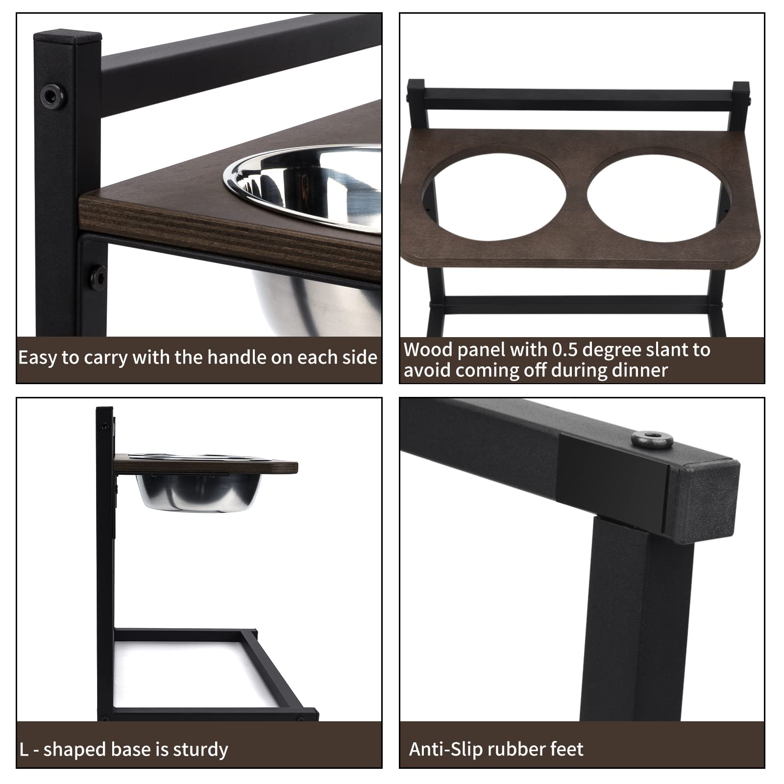 - Adjustable Elevated Dog Bowl Stand: This raised dog bowl stand adjusts to 3 different heights (5in, 9in, 13in) to accommodate different sized dogs.