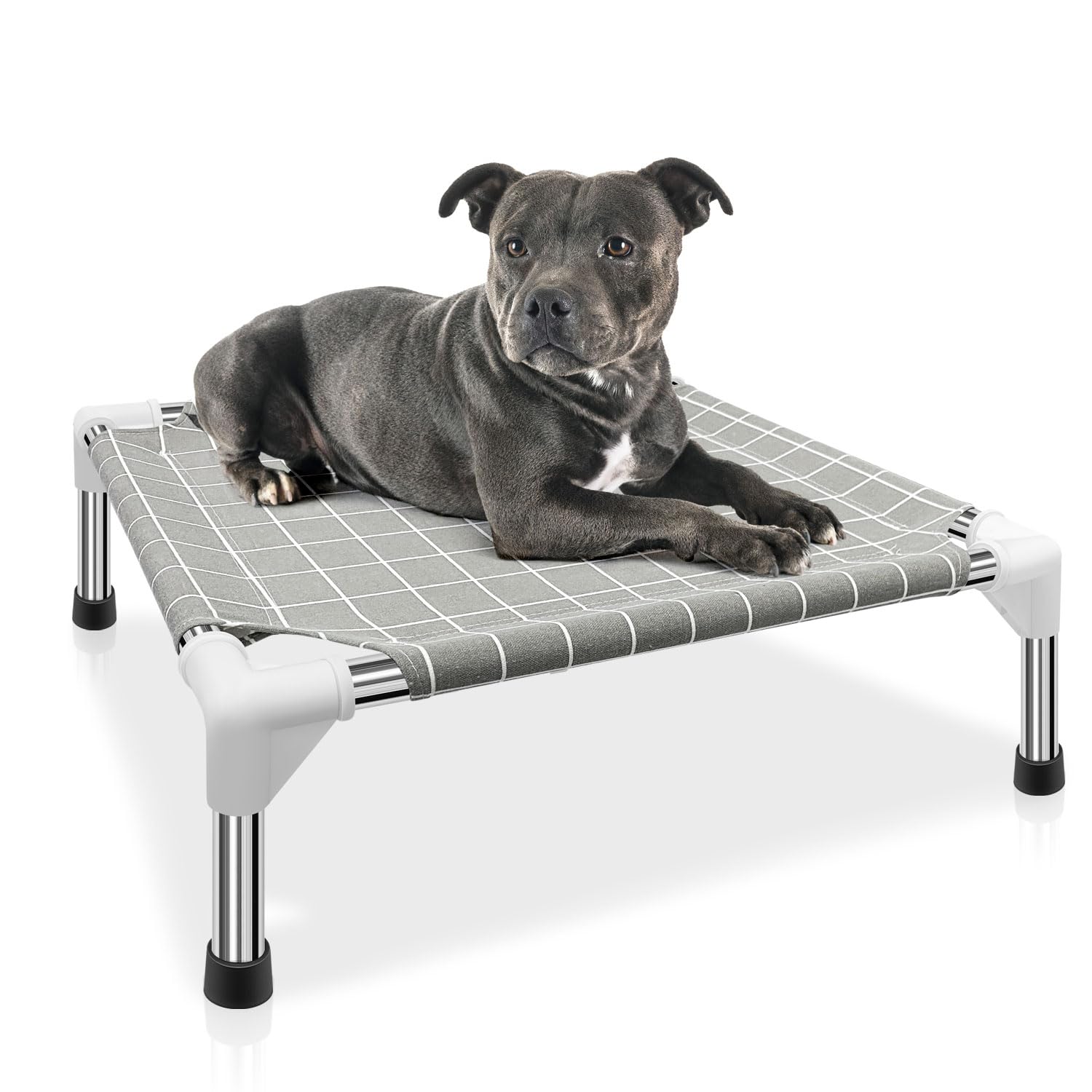 - Elevated Dog Bed With Stable And High Bearing Capacity TeeOur outside dog bed adopts a new type of heavy bearing tee, specially designed and produced with high-quality materials. The wall of dog bed tee is thickened to improve its toughness and make it more anti-aging. Let our dog maximize the sense of security when using the elevated pet bed.