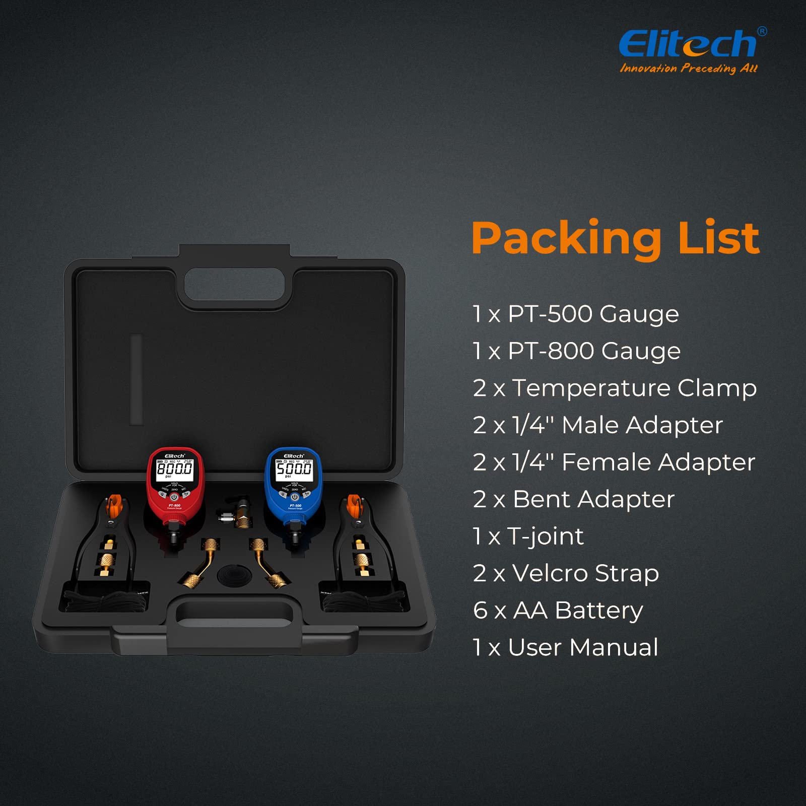 - Original Pressure Gauges – Digital AC Gauge Set HVAC Gauges APP Monitoring with Temperature Clamps 1/8'' NPT, PT-500&PT-800 by Elitech