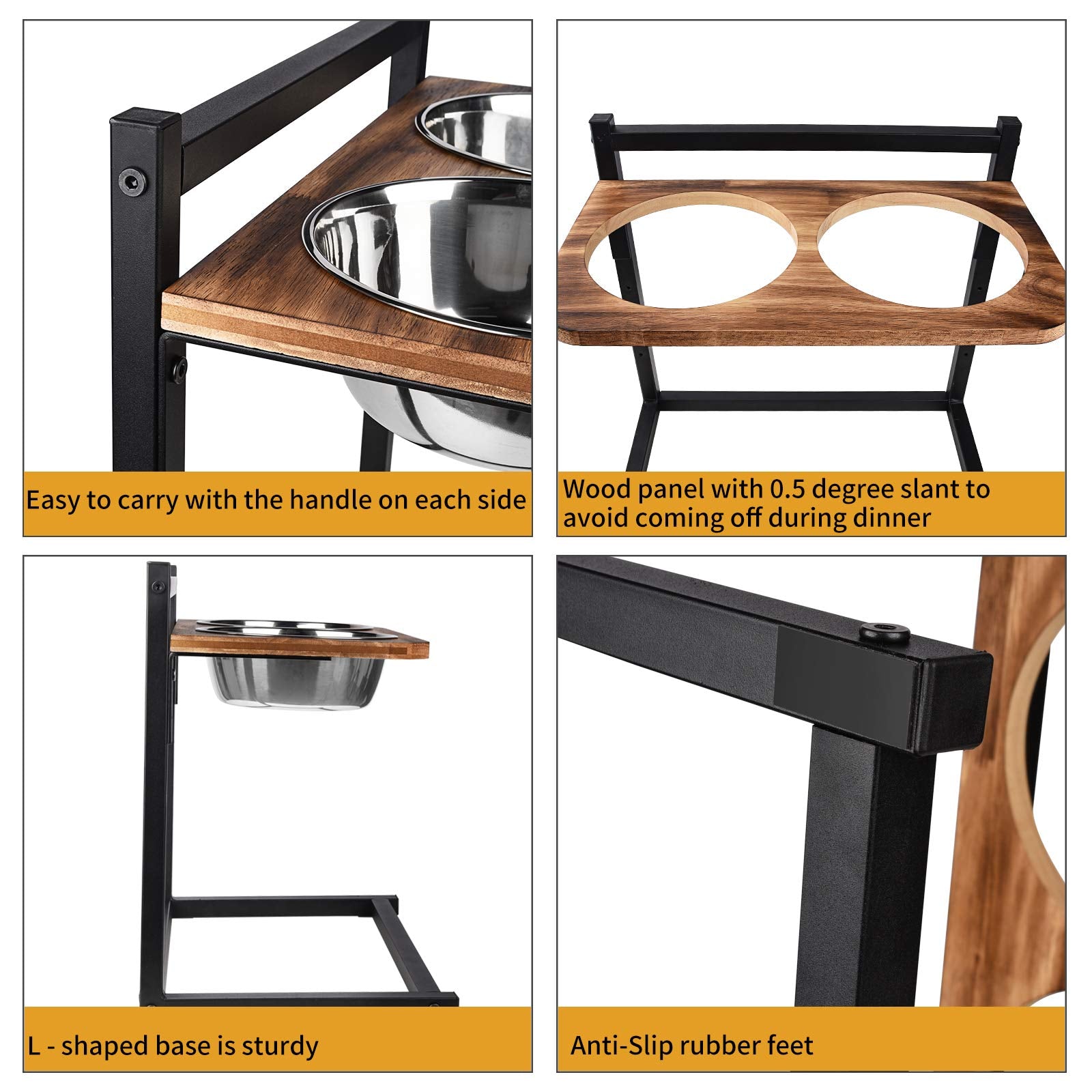 - Adjustable Elevated Dog Bowl Stand: Nonslip, adjustable stand raises bowls to 3 different heights for easy access and cleaning.