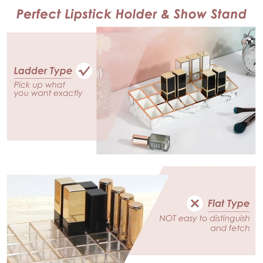 - Original Cosmetic Display Cases – Lipstick Holder, 24 Slots Marble Lipstick Organizer Display Stand with Unique Gold-stamping Edges, Cosmetics Storage Display Case for Lipstick, Lip Gloss, Brushes, White Marble (P723314097671) by Emibele