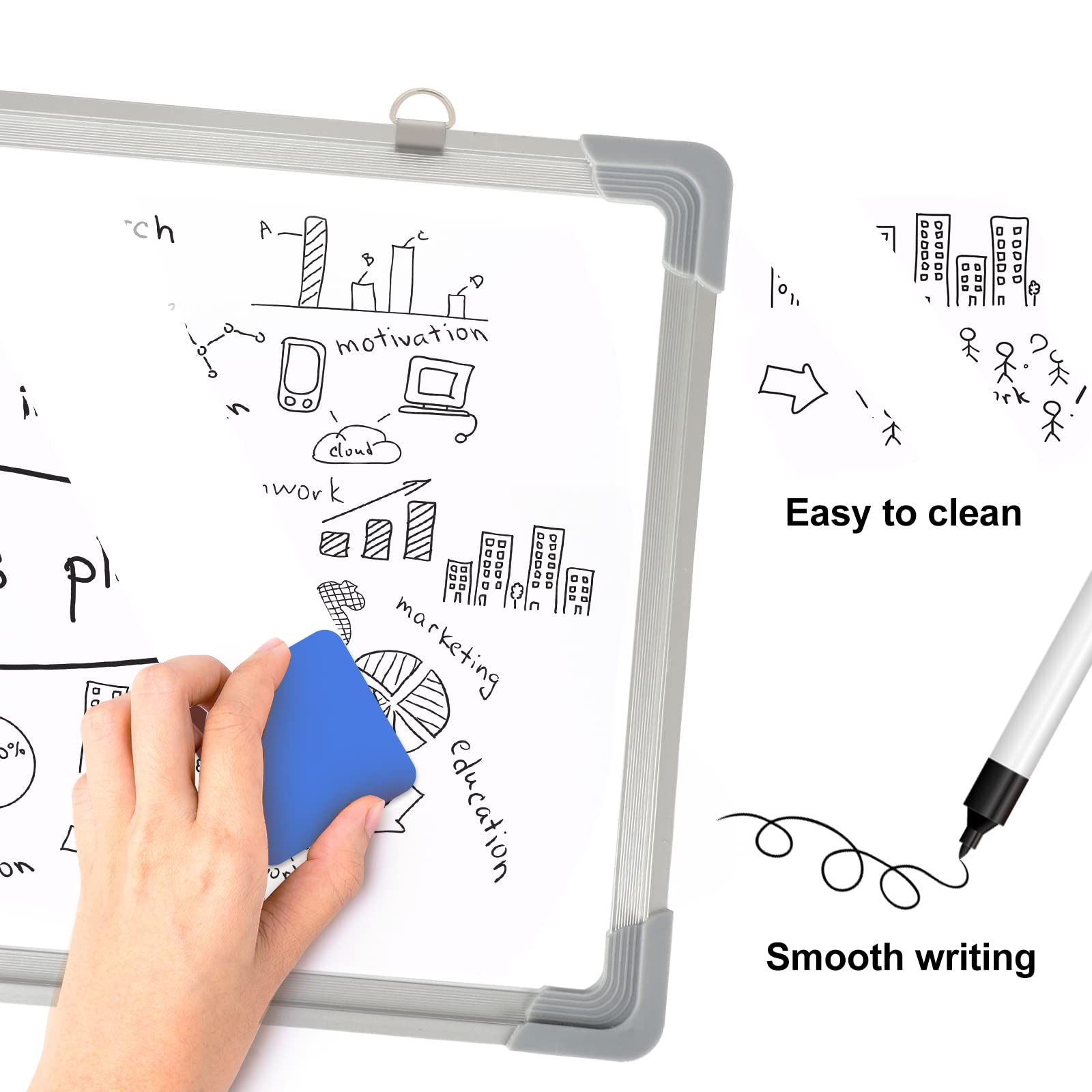 - Super Value Whiteboard Set: 12*16 inch double-sided monthly calendar plan dry erase board set. Comes with 12 magnetic dry erase pens in 8 different colors, 4 round magnetic pieces, 4 small stamp-style magnetic pieces, and 2 square erasers. This whiteboard set with abundant accessories can fully meet your daily needs. Magnetic whiteboards are very suitable for placing on office desks, walls, bedside tables, kitchen counters, classroom podiums, etc.