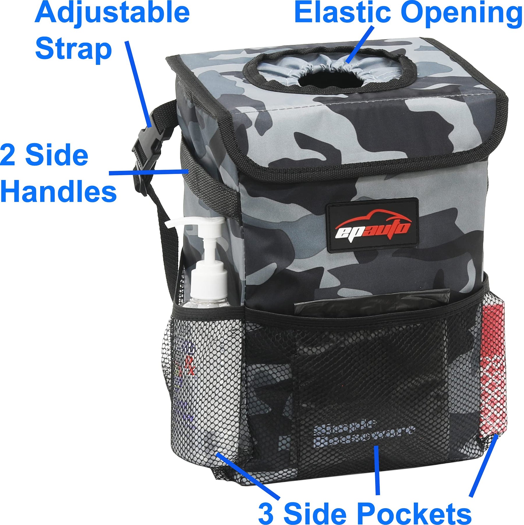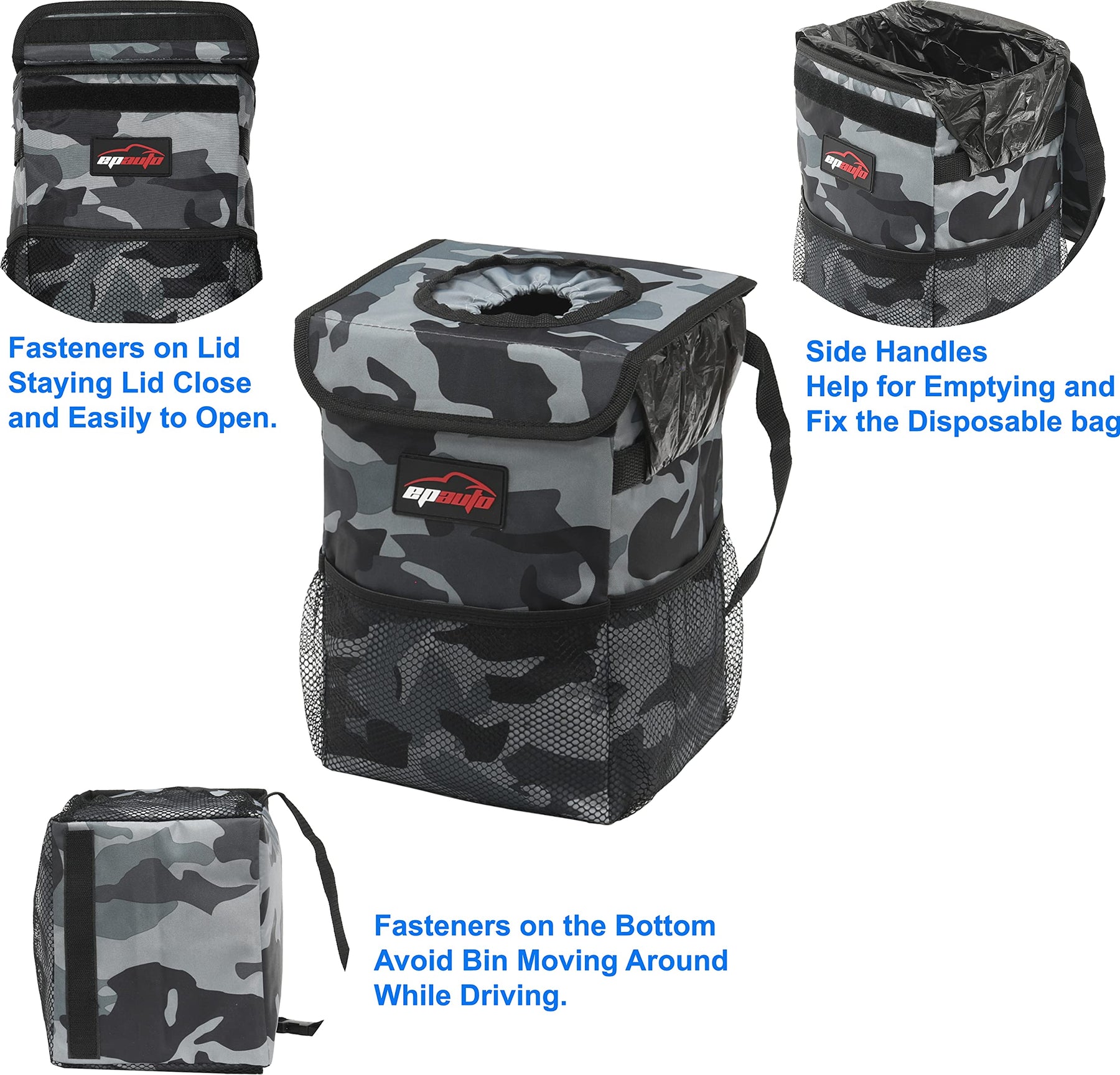 - Original Garbage Cans – Waterproof Car Trash Can with Lid and Storage Pockets, Camouflage Grey by EPAuto