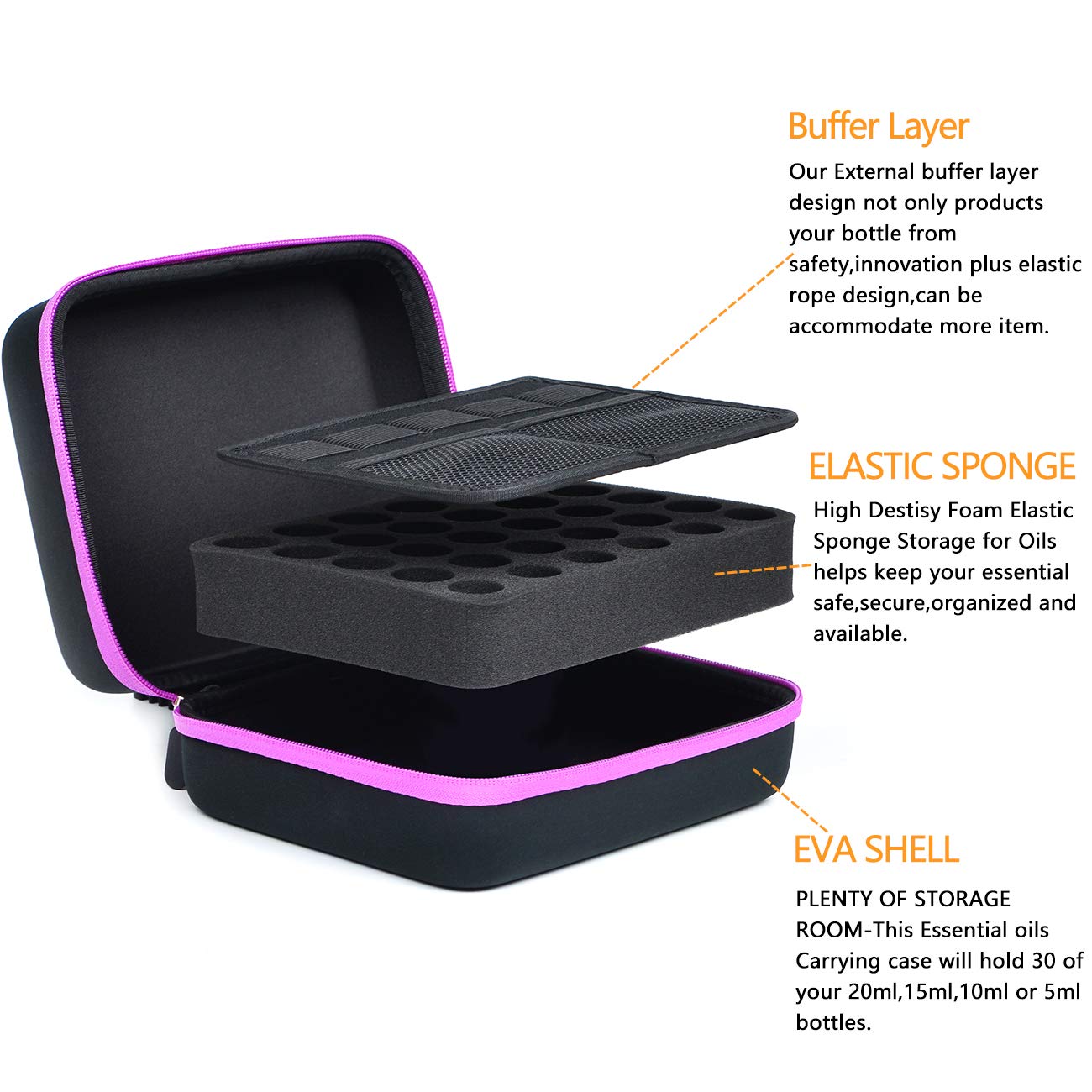 - Original Travel Cases – Essential Oil Carrying Organizer Storage Case for 30 Roller Bottles 5/10/15/20ml Small bottles with Free Writable Labels Opener Holds Purple-8.7Lx6.3Wx3.7H by BES CHAN