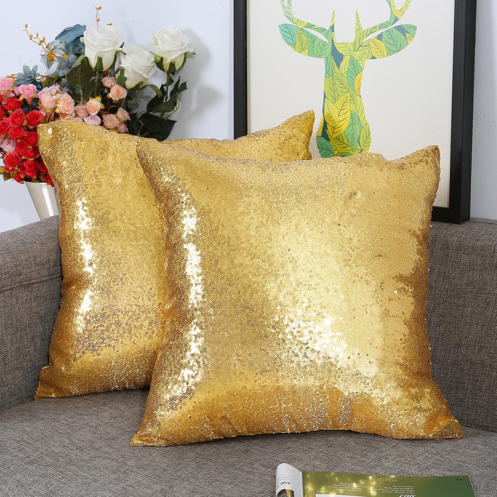 - Original Throw Pillow Covers – Set of 2 Sequin Decorative Pillow Cover Gold Throw Pillow Covers for Couch Throw Pillows 20 X 20 Inches by Eternal Beauty