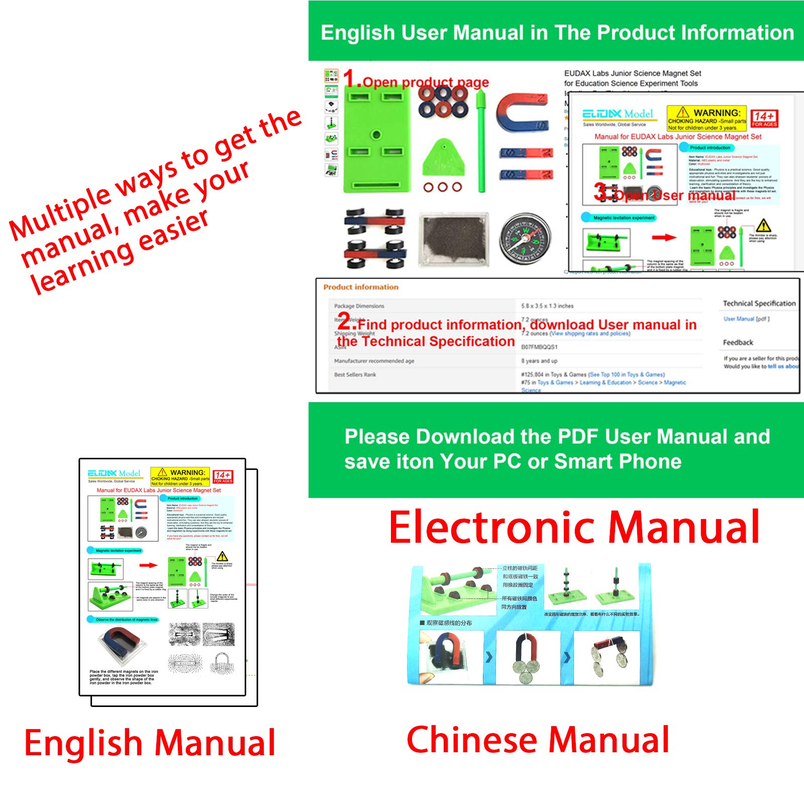 - Original Magnets & Magnetism Kits – Labs Junior Science Magnet Set for Education Science Experiment Tools Icluding Bar/Ring/Horseshoe/Compass Magnets by EUDAX