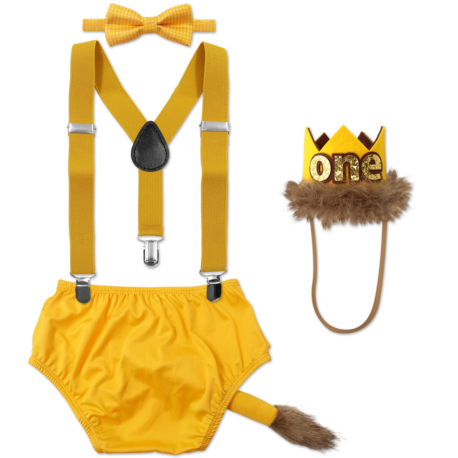 - Original Baby Boys – Jungle First Birthday Cake Smash Outfit Wild One Birthday Outfit King of The Jungle Zoo Animals Party Outfit Bloomers Bowtie Crown Adjustable Y Back Suspenders Strap Clip Costume by Eunikroko
