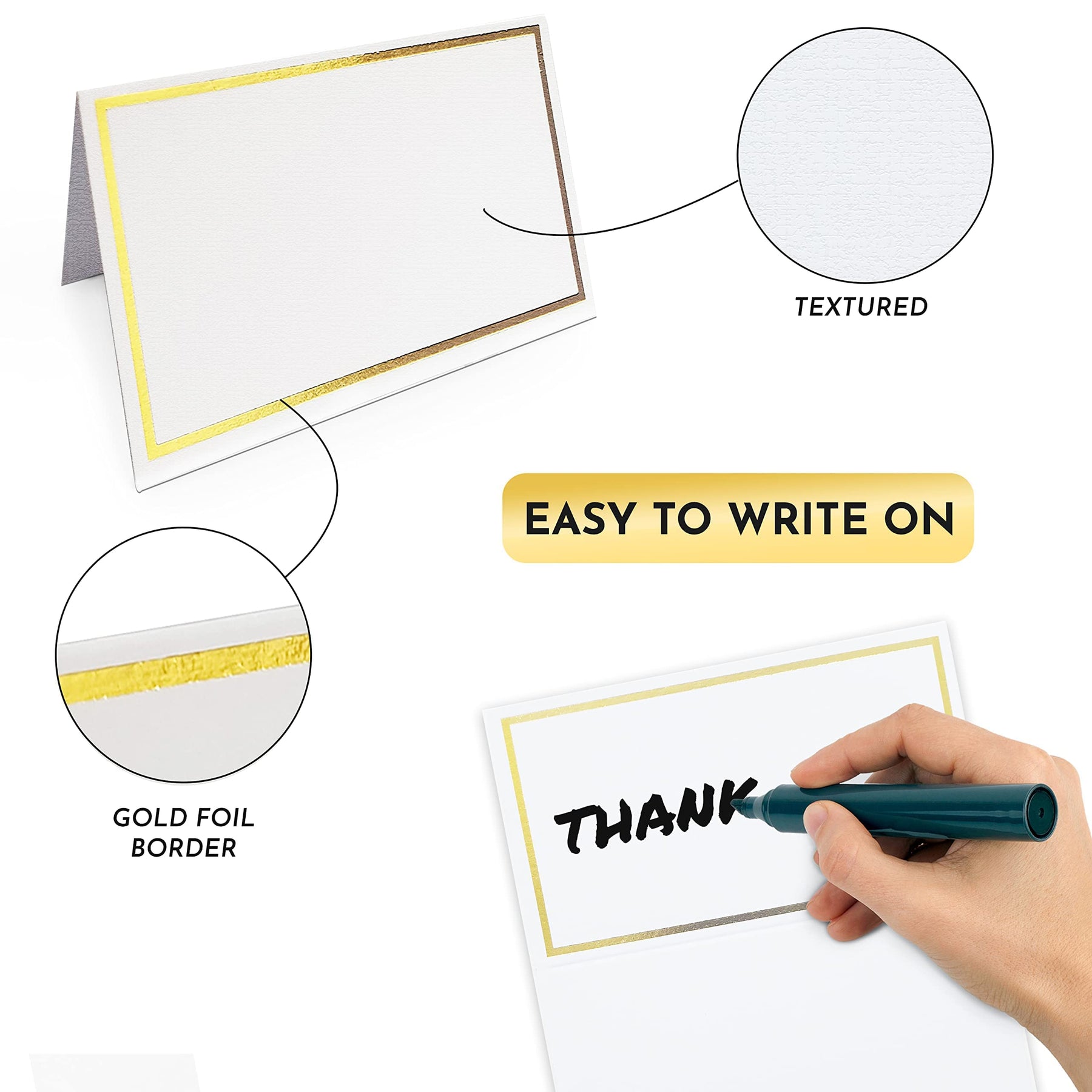 - Original Place Cards – Evaster Place Cards Pack of 100 Premium Tent Name Place Cards for Table Setting with Gold Foil Border 2x3.5 inches - Perfect Place Cards for Weddings, Banquets Dinner Parties and any other Events by EVASTER