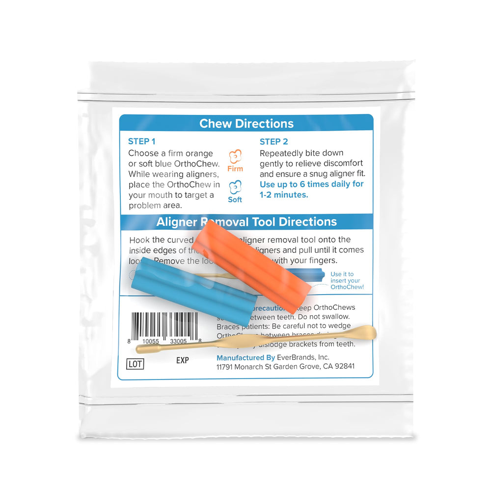 - ALIGNERS FIT BETTER: OrthoChews are very useful when changing to a new set of trays. They help the aligners fit properly on your teeth right away, which helps your teeth start moving immediately. After putting your aligners in, chew on one of these for a few seconds to ensure that the aligner is fully seated on your teeth and comfortable in your mouth.