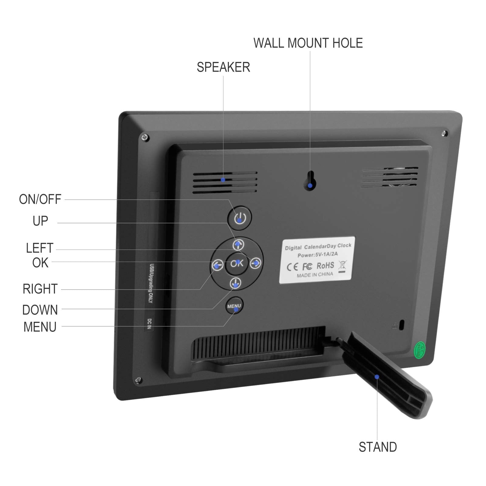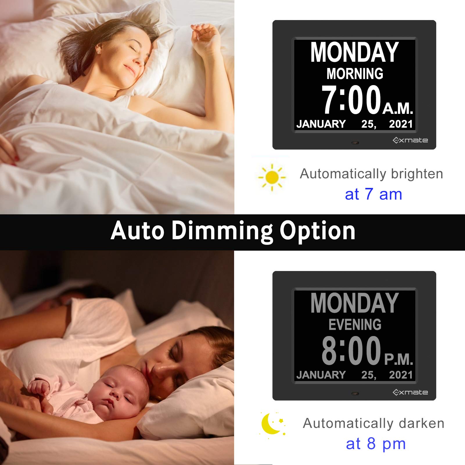 - Original Alarm Clocks – Digital Calendar Alarm Day Clock, 8 Day Clock Calendar Large Screen Display, with 13 Alarm Options Snooze Function for Elderly, Visual Impairment, Dementia, Memory Loss by Exmate