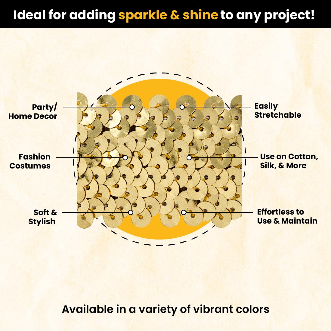 - Original Sequin Trim – Trims By The Yard 4-Row Metallic Stretch Sequin Trim, 1 1/2-Inch Versatile Sequins for Crafts, Durable Sequin Trim for Costumes, Fashion, and Home Decor, 10 Yards Cut, Gold by Trims by the Yard