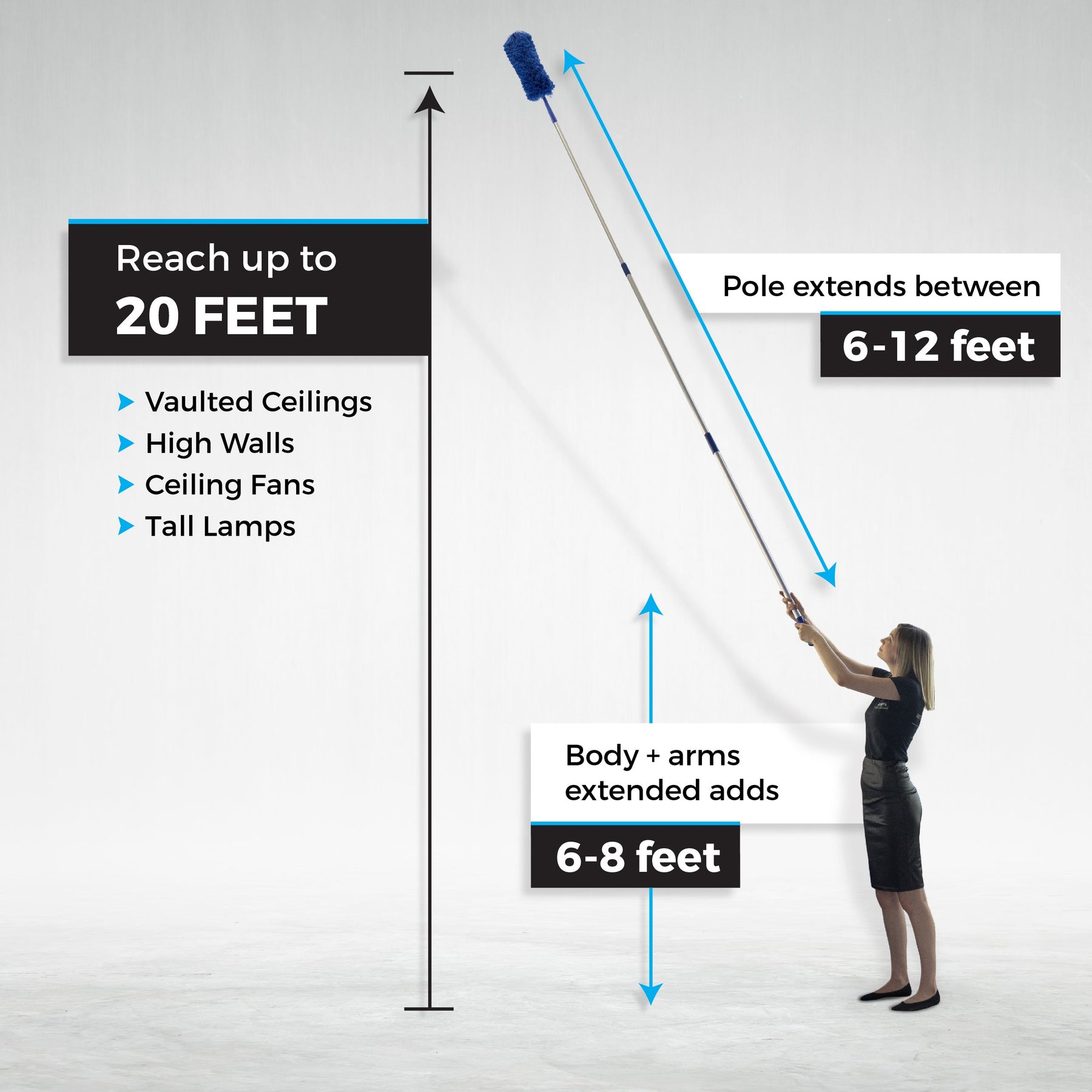 - Original Feather Dusters – Extension Rod & Blue Extension Cobweb Duster Ultimate Dusting Kit - Extendable Reach 20 feet, Ceiling Fan Duster, Long Handle Aluminum Telescoping Pole, Webster Duster for Cleaning by Extension Duster