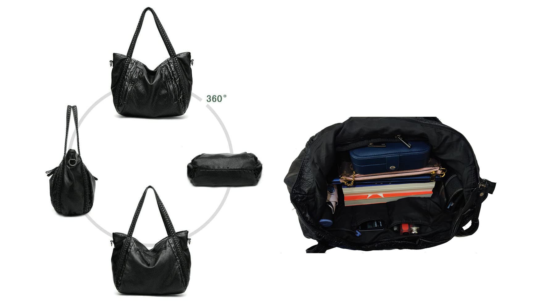 - Detail Oriented Extra Large Bag for Women: the braided handle sewn to the bottom makes the large-capacity bag more durable and practical and also more stylish, adds the exquisite to a classic black handbag,, which is minimalist but not simple