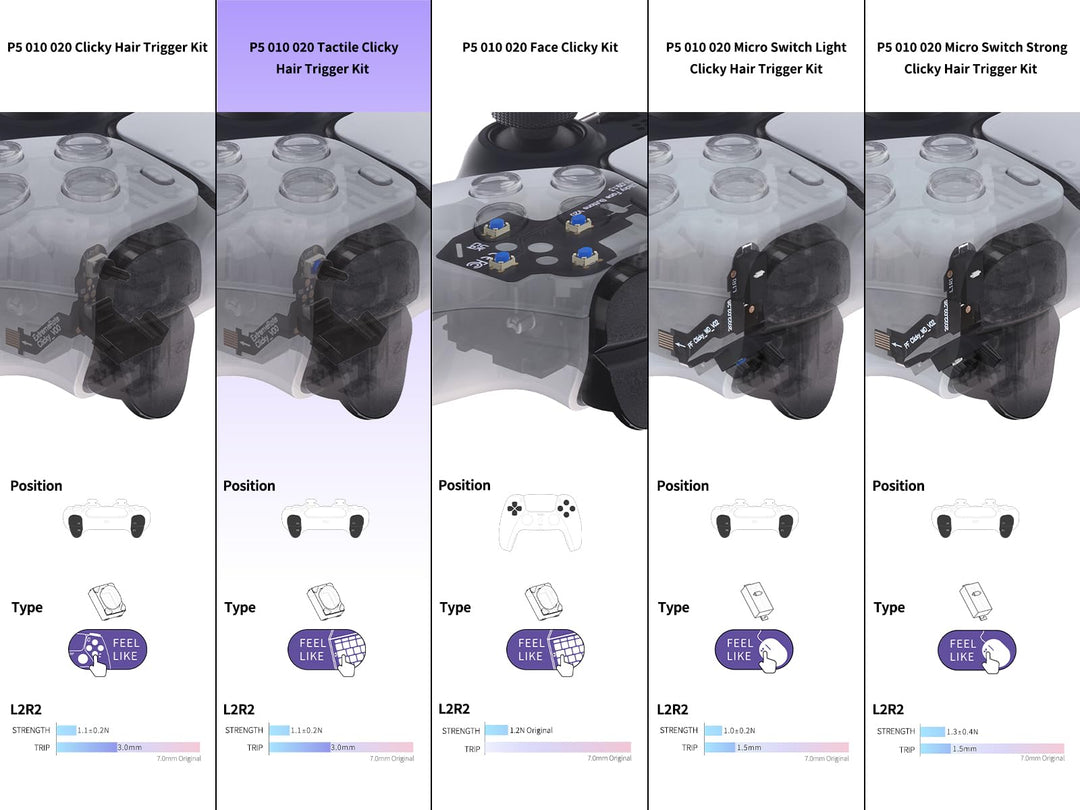 - Original Accessories – Tactile Version Clicky Hair Trigger Kit for PS5 Controller BDM-010 & BDM-020 Shoulder Buttons, Custom Tactile Bumper Trigger Buttons for PS5 Controller, Mouse Click Kit for PS5 Controller by eXtremeRate