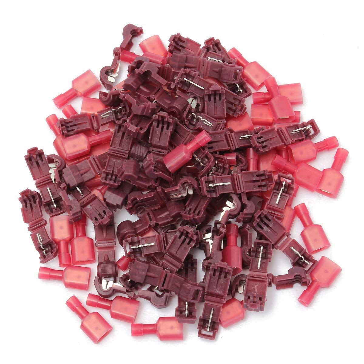 - Original Categories – 100Pcs (50 Pairs) Terminal Connectors T-Tap Quick Disconnect Wire Connectors Self-stripping Insulated Connectors 22-18 Gauge Female Spade Connector Quick Splice Wire Terminal Kit by Eyech