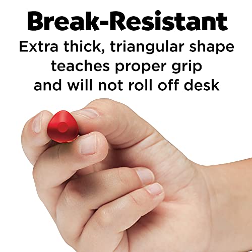 - Triangle crayons: triangular shaped crayons allows little artists to learn the proper grip. Bonus - these extra-thick, jumbo crayons will not roll off the desk!