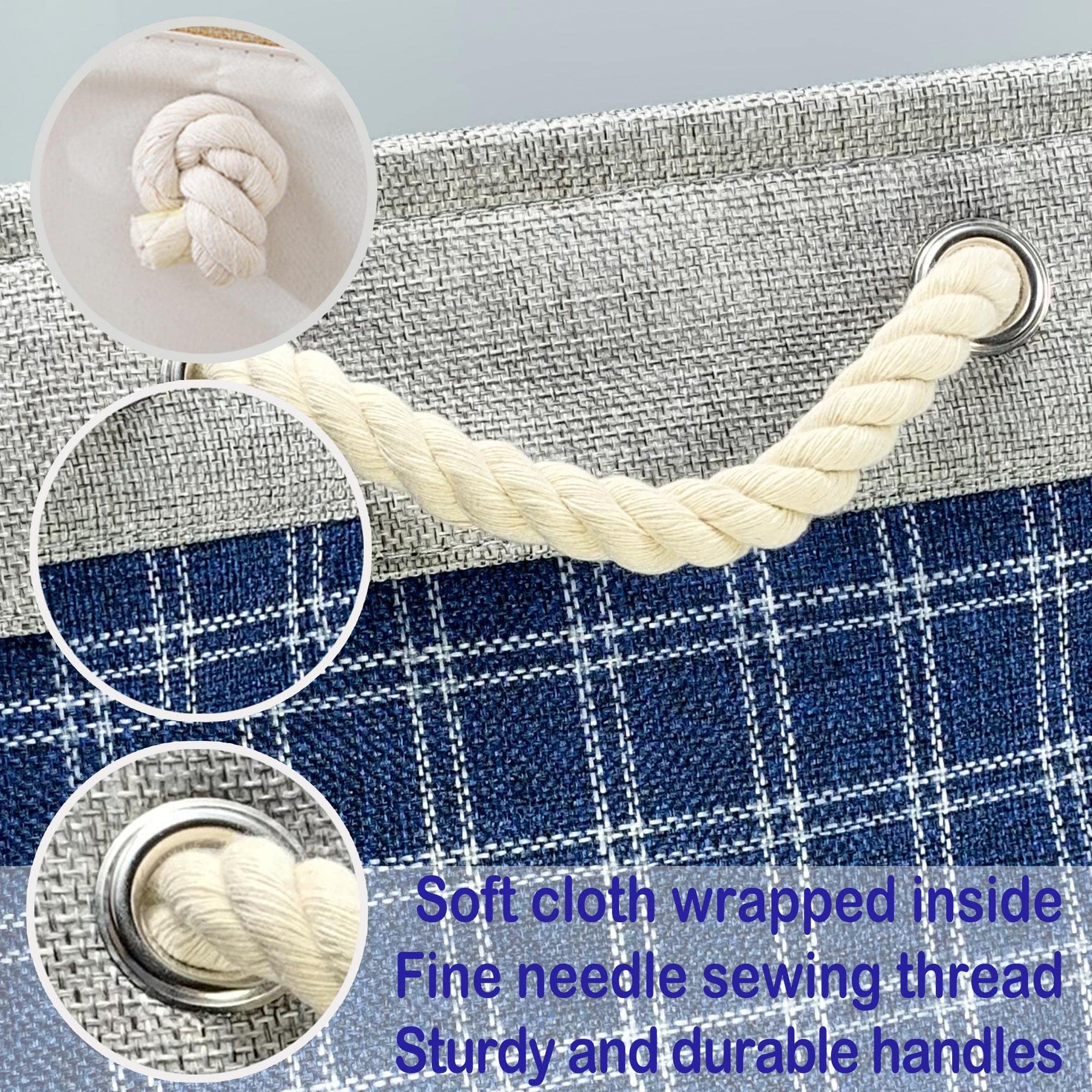 - Strong Cotton Rope Handle Sturdy and Durable- Our organizer bins are made of friendly cotton linen material outer and polyester lining. The cotton rope handle is stronger and more durable than other handles. Fabric storage Baskets with a sturdy metal rod frame around the top to keep the basket shape.