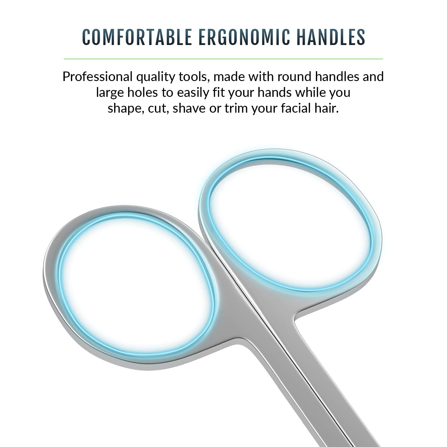 - COMFORTABLE ERGONOMIC HANDLES - Grooming entails a great deal of concentration, with Andlane you get professional quality tools, made with round handles and large holes to easily fit your hands while you shape, cut, shave or trim your facial hair.