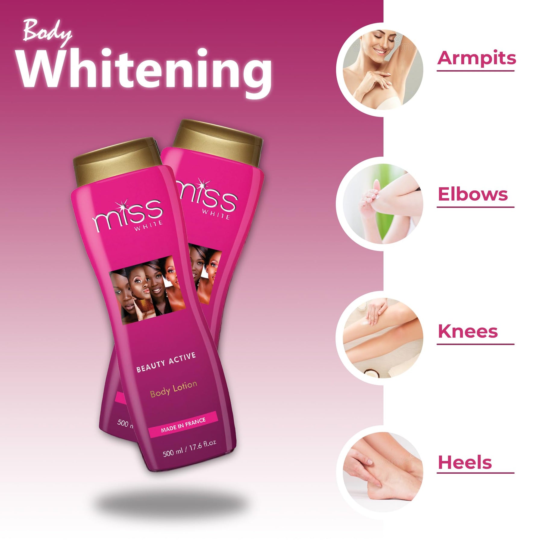 - Original Lotions – FAIR & WHITE-Miss White, Skin Brightening Body Lotion – 13.5 Fl oz / 400 ml – Moisturizing, Hydrating Lotion, Helps to Reduce pigments on: Body, Elbows, Knees and Armpits by FAIR & WHITE