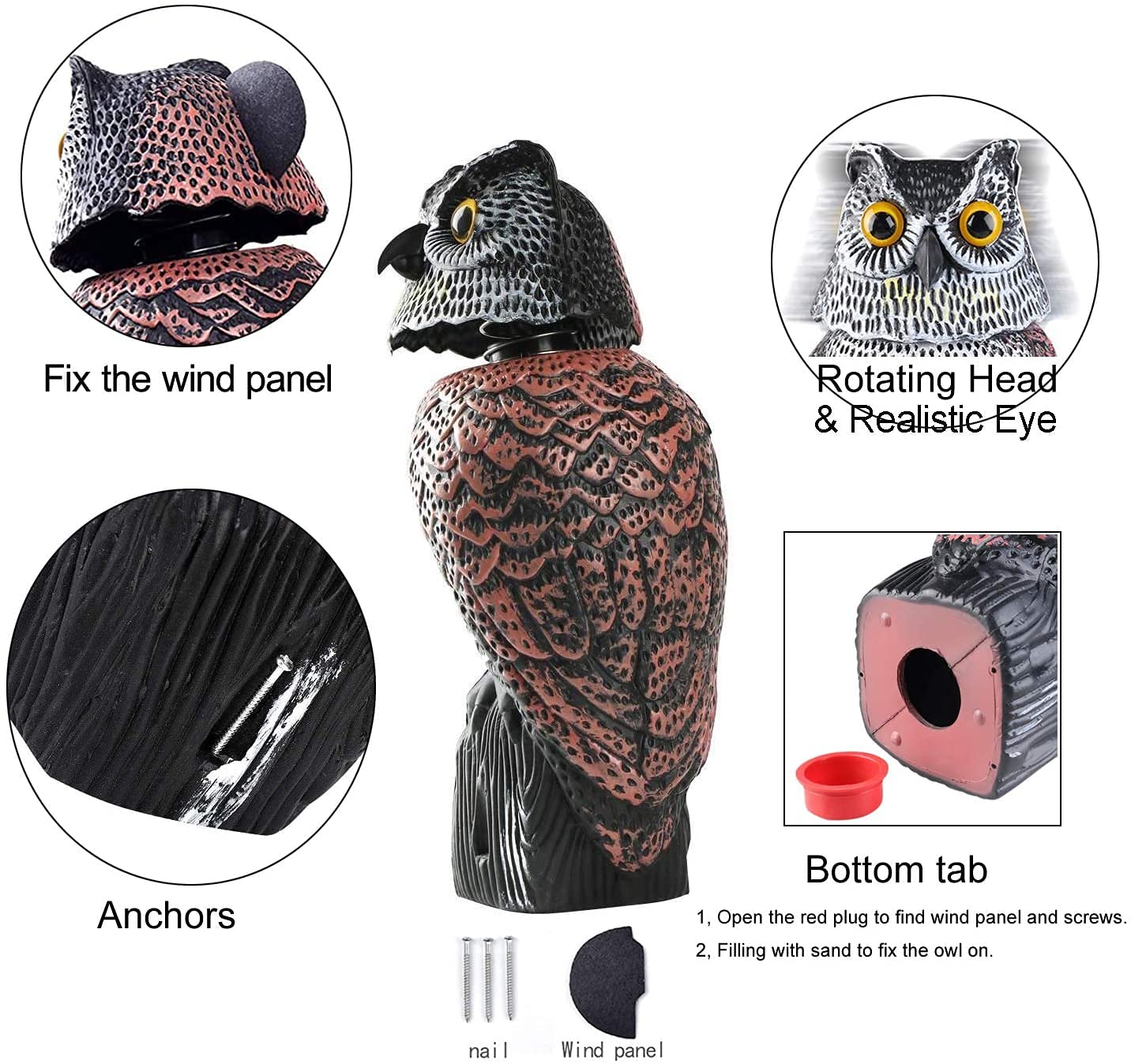 - Original Outdoor Statues – Fake Owl Sculpture with Rotating Head Owl for Garden by Gardaner