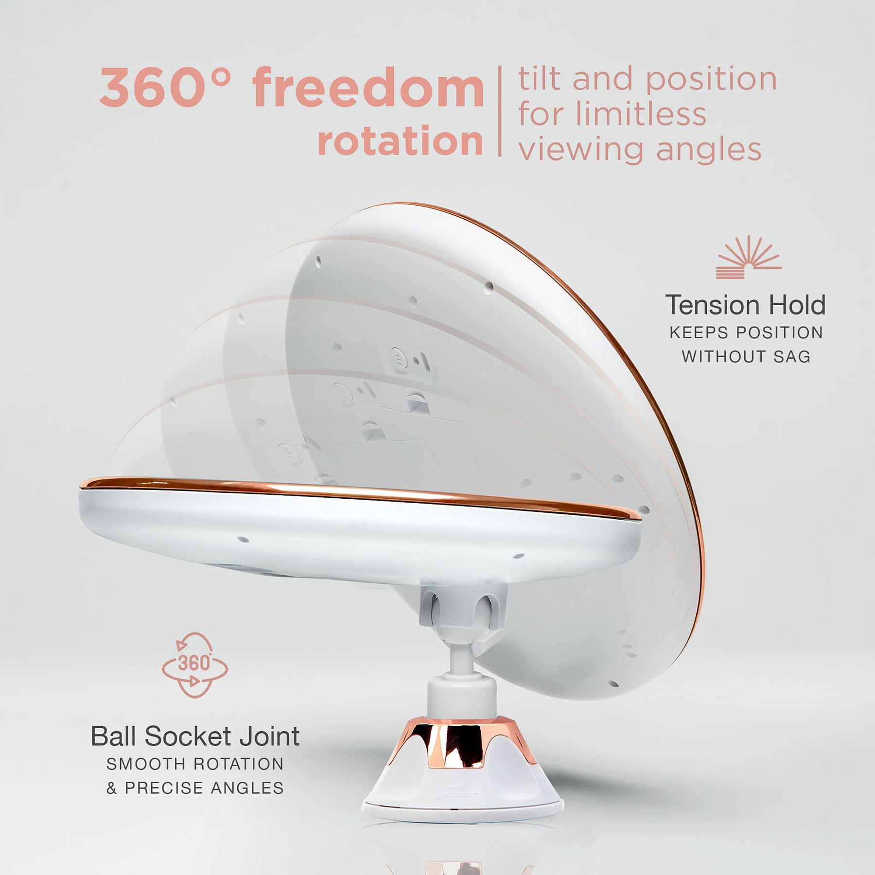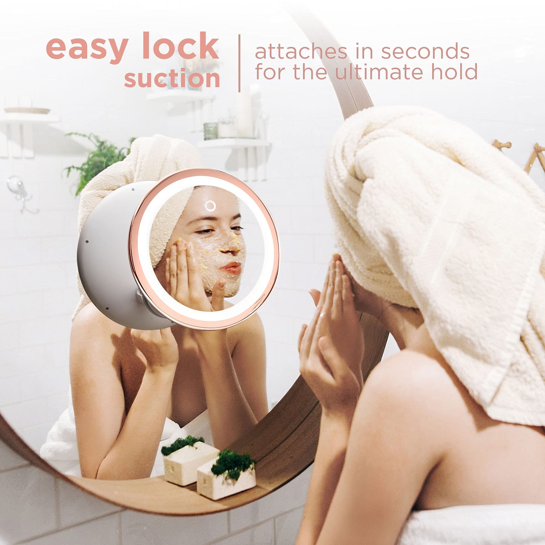 - Original Compact & Travel Mirrors – 10X Magnifying Makeup Mirror with True Natural Light and Locking Suction - 8 inch Large Lighted Travel Vanity Mirror, Dimmable Daylight LEDs, Battery and USB Operated - Luna (Rose Gold) by Fancii