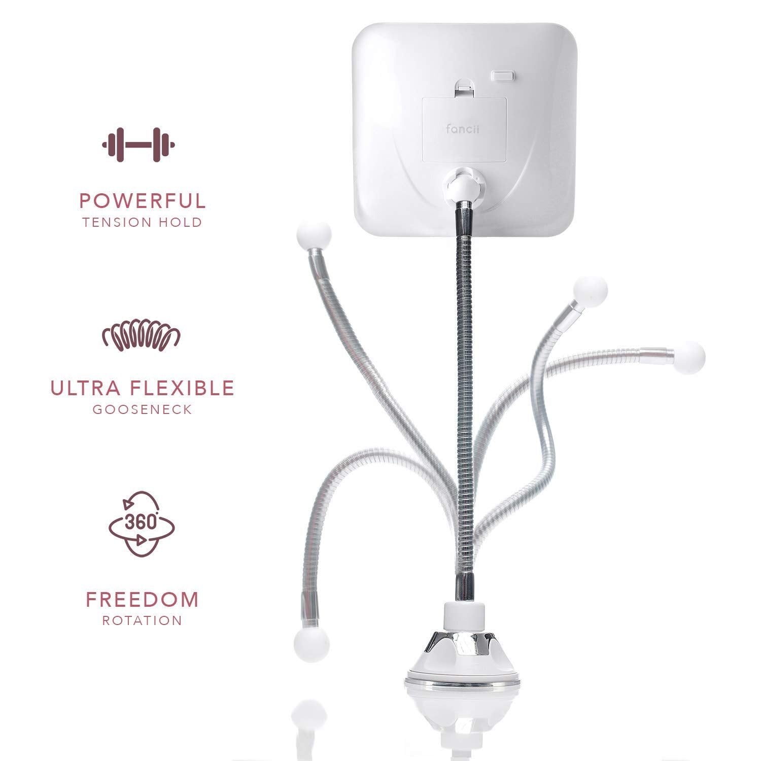 - Locking Suction Cup - 360° rotation, fully adjustable to any desired angle or position. Airtight-seal suction cup securely attaches to any smooth surface, such as mirror, marble, ceramic, or porcelain.