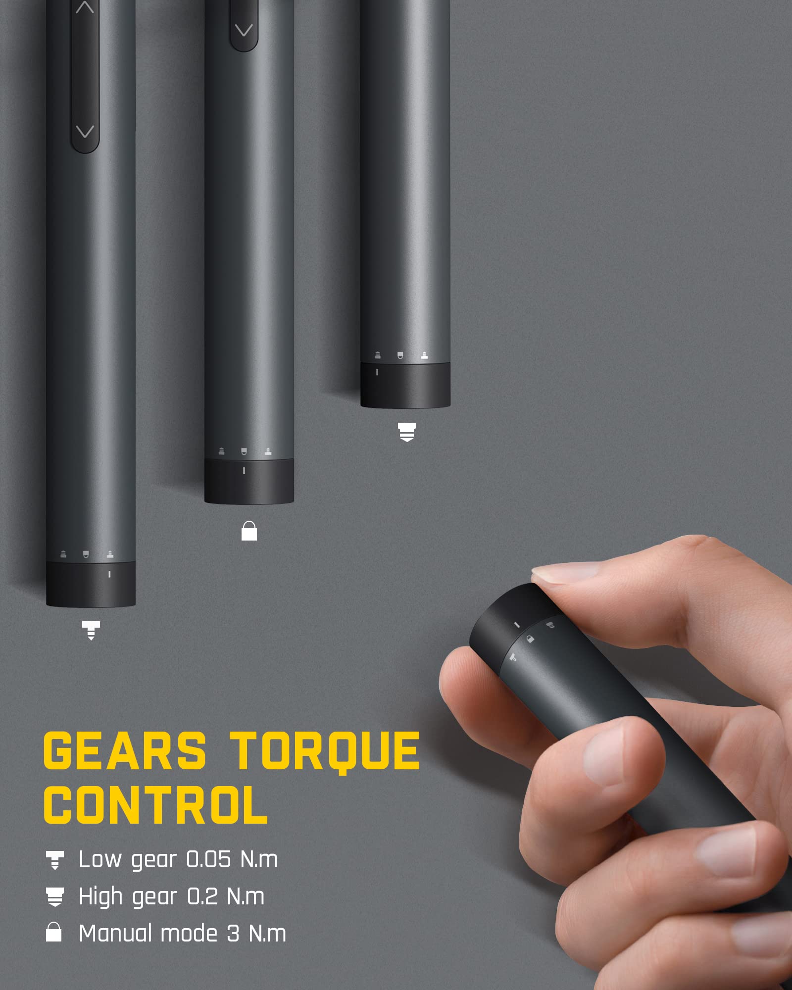 - Precision Torque: This screwdriver has a high and low electric torque of 0.05 / 0.2N.m and a manual torque of 3N.m. Also, it can work continuously for 2 hours, which is completely enough for your electronic repair work. Suitable for tablet computers, mobile phones, watches, electronic bracelets, cameras, precision instruments, etc.