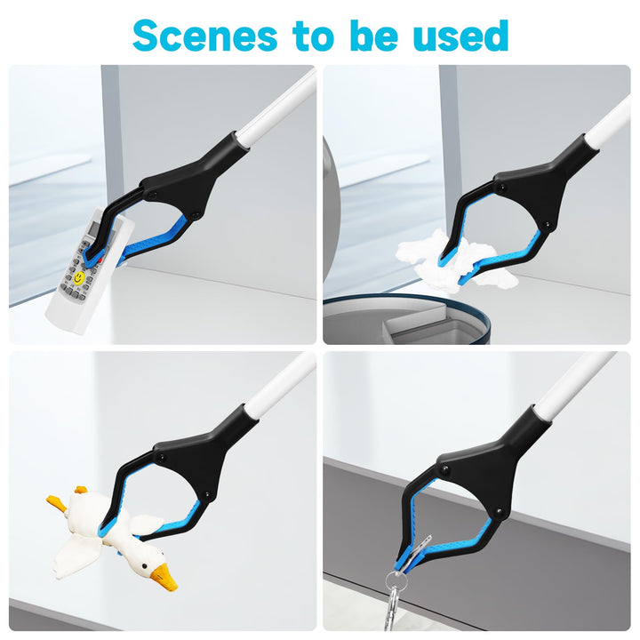 - 32 Reacher Grabber: The pliers can be rotated and used vertically and horizontally. 32 in length to reach places your arms normally can't reach. Folds for easy storage and is lightweight so you can easily lift it and take it anywhere.