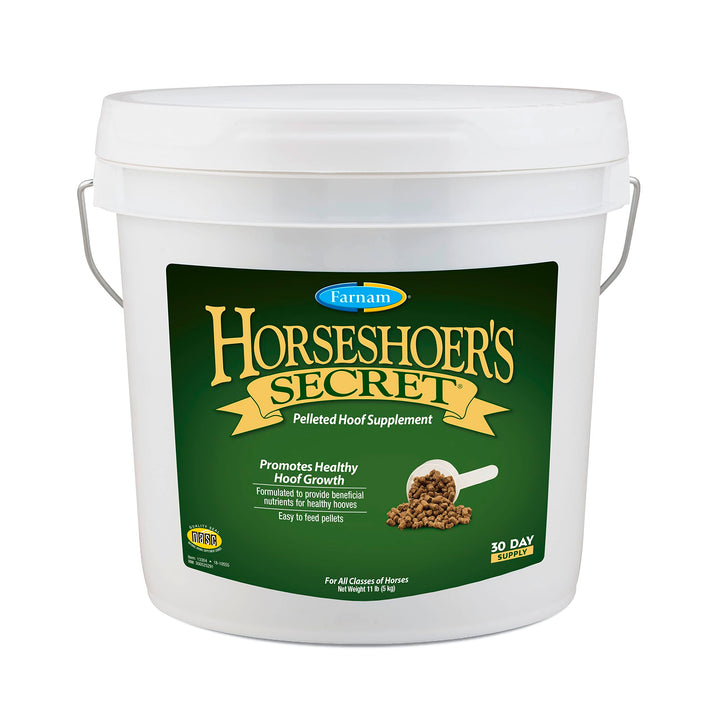 | included components | Farnam Horseshoer's Secret Pelleted Hoof Supplements, Promotes healthy hoof growth, maintains hoof walls & supports cracked hooves, 11 lbs., 30 day supply |