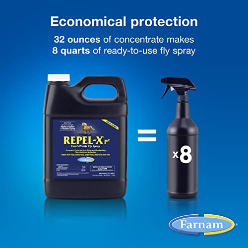 - Original Fly Repellents – Repel-XPe Emulsifiable Horse Fly Spray, Liquid Concentrate, Mix with Water, 32 Ounces, One Quart by Farnam